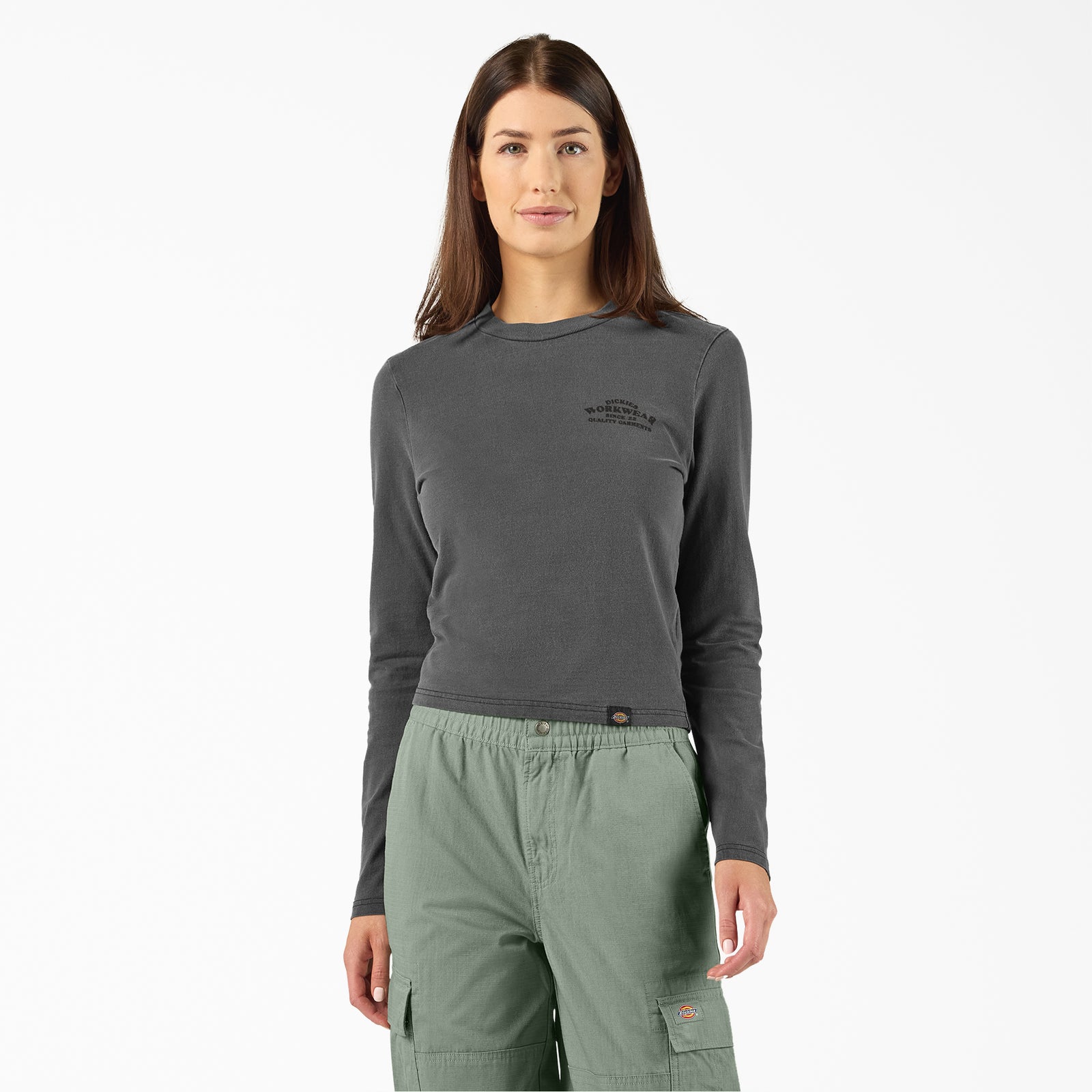 A comfortable, understated style perfect for daily wearing. The Christiana women's long sleeve t-shirt features a slim fit, 100% garment dyed cotton, and subtle vintage-inspired artwork on left front chest.