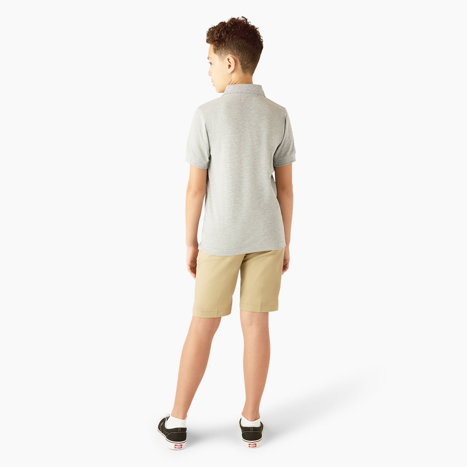 The Kids' Piqué Short Sleeve Polo Shirt delivers timeless style with the durability you expect from Dickies. This essential children's polo is made from breathable pique fabric that holds up through school days, play, and everything in between. Designed with a clean collar, button placket, and reinforced seams, it’s a reliable kids' polo built for movement and made to last. Shop several uniform colors in sizes 4-20, so they can keep that classic Dickies look as they grow.