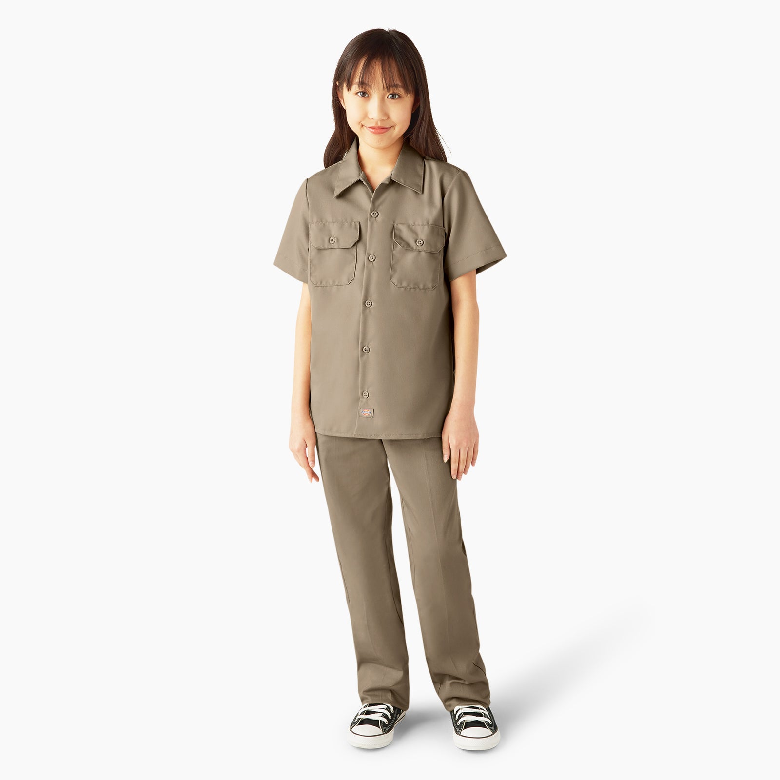 Same great style as our original men's work shirt. The kids’ short sleeve work shirt is equipped with moisture-wicking properties to keep them dry and comfortable all day long. The shirt has convenient chest pockets with a pencil division and features our easy-care twill blend fabric.