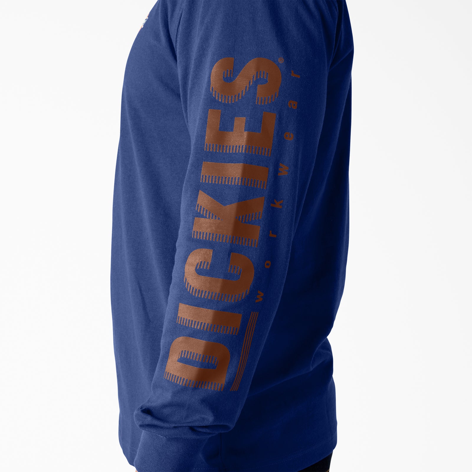 This Men's Long Sleeve Workwear Graphic T-Shirt is built to last–just like you. Its 100% cotton jersey fabric is both comfortable and durable.. Whether you’re wearing this tee by itself on the jobsite or layering it under a hoodie, this long sleeve tee in a relaxed fit will feel great all day long. Finished with a subtle chest logo and Dickies Workwear graphic down the sleeve, the Long Sleeve Workwear Graphic T-Shirt may quickly become your new favorite workwear–or weekend–staple.