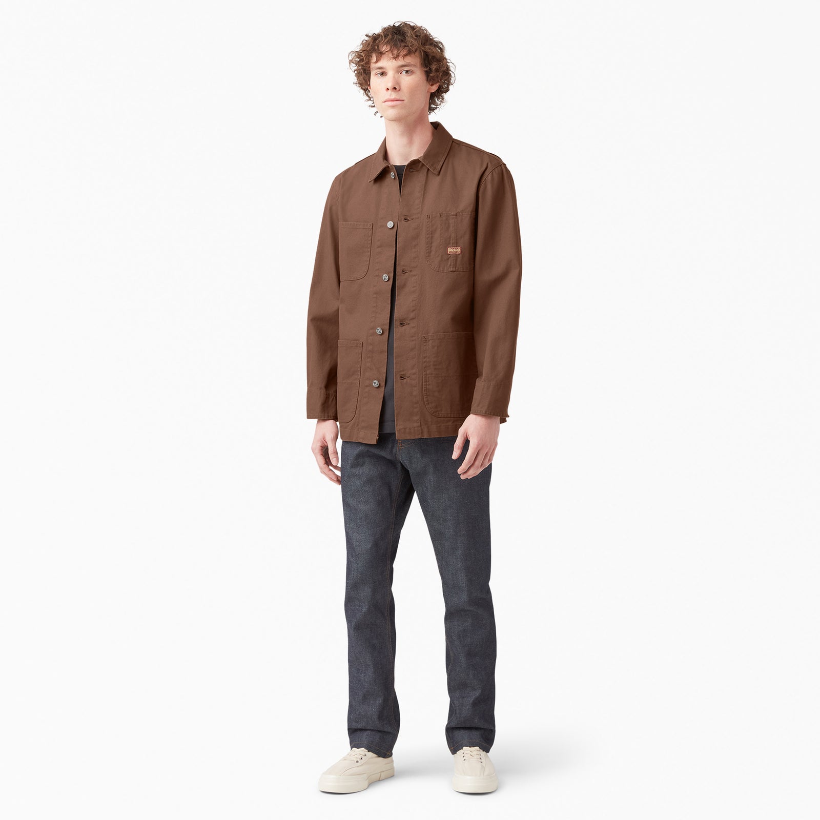 Constructed with authentic vintage style and purpose, the Duck Chore Coat replicates the hardworking pieces of the past. This limited-edition chore coat was handcrafted in the USA with the same commitment to quality and detail as when the originals were first produced over the past century. Constructed from 9 oz canvas Duck and reinforced with double needle stitching, this hardworking coat only gets better with wear. The versatile design is great for layering and is an essential closet staple for every season. This chore coat features four distinctive patch pockets including a side entry watch pocket on the chest. This unique detail is a throwback to the value of the pocket watch to workers and their need for functional utility in their workwear. The metal cloverleaf design buttons on the cuffs and front closure have been reproduced to pay homage to the industrial style details of the past. Dickies 1922 burgundy and gold heritage logo is proudly placed at the front chest pocket to prove your passion for authentic American workwear. Pair with Dickies 1922 Duck Double Front Pants to complete your look.