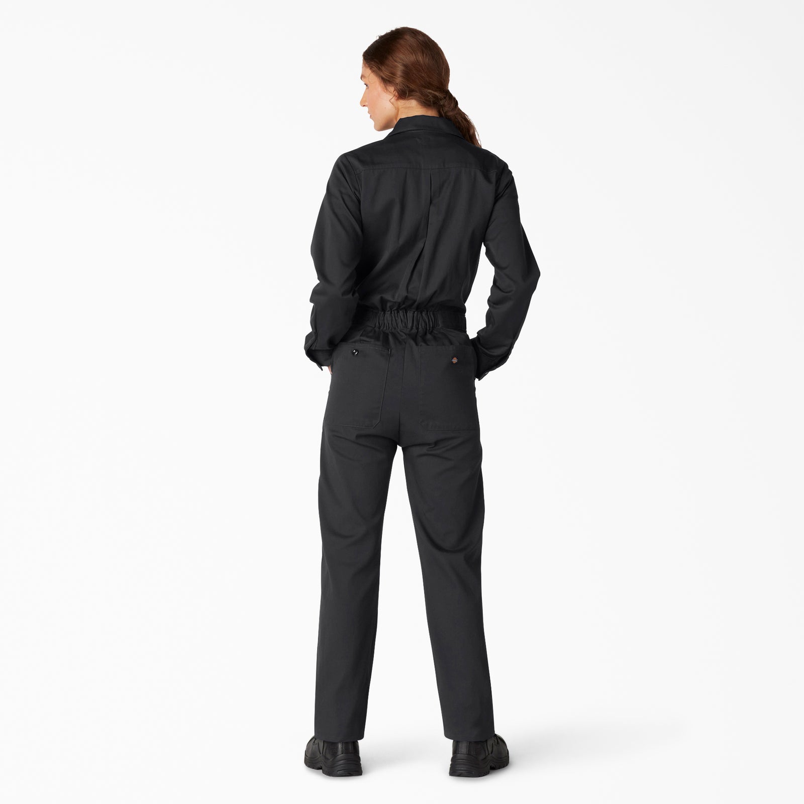 Dickies Women's Long Sleeve Coveralls are 100% cotton for ultimate workwear comfort. Crafted with care in the classic style using our heritage design, they stand up to the challenge of any workplace with their combination of durability and practicality. The cinched back elastic waistband and rear box pleat allow freedom of movement to get the job done with ease. Two large bar-tacked back pockets offer ample storage for your essentials. Long sleeves provide comfortable arm protection when you need it.