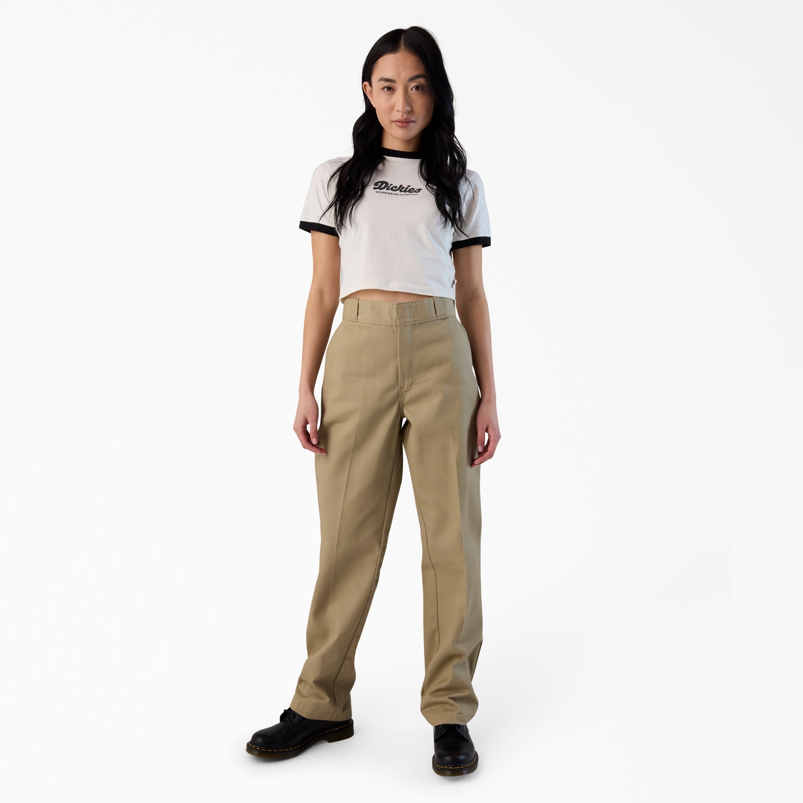 Our Women's 874® Work Pants have been a classic for decades. The iconic pants are constructed from an ultra-durable twill fabric that wears in comfortably over time and features an easy care stain-release finish and wrinkle-resistant properties. The 874 work pants have a high rise that sits at the natural waist with a sturdy waistband for support, a relaxed fit through the seat and thigh, and a classic straight leg style that tapers slightly at the hem.