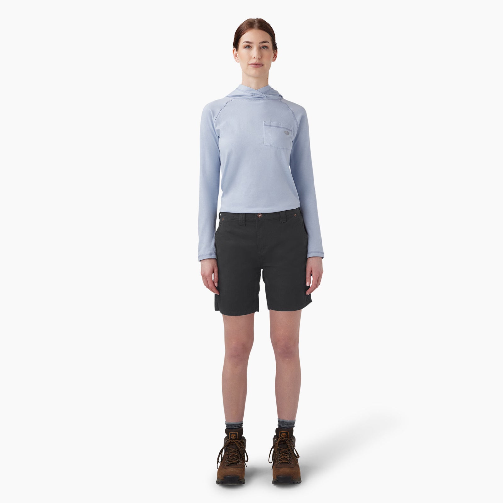 These women’s carpenter shorts are built from durable, stretchy Duck Canvas and equipped with utility features that work for every task. The work shorts have spacious pockets, reinforced details, utility loops, a classic mid rise, and 7” inseam for coverage.