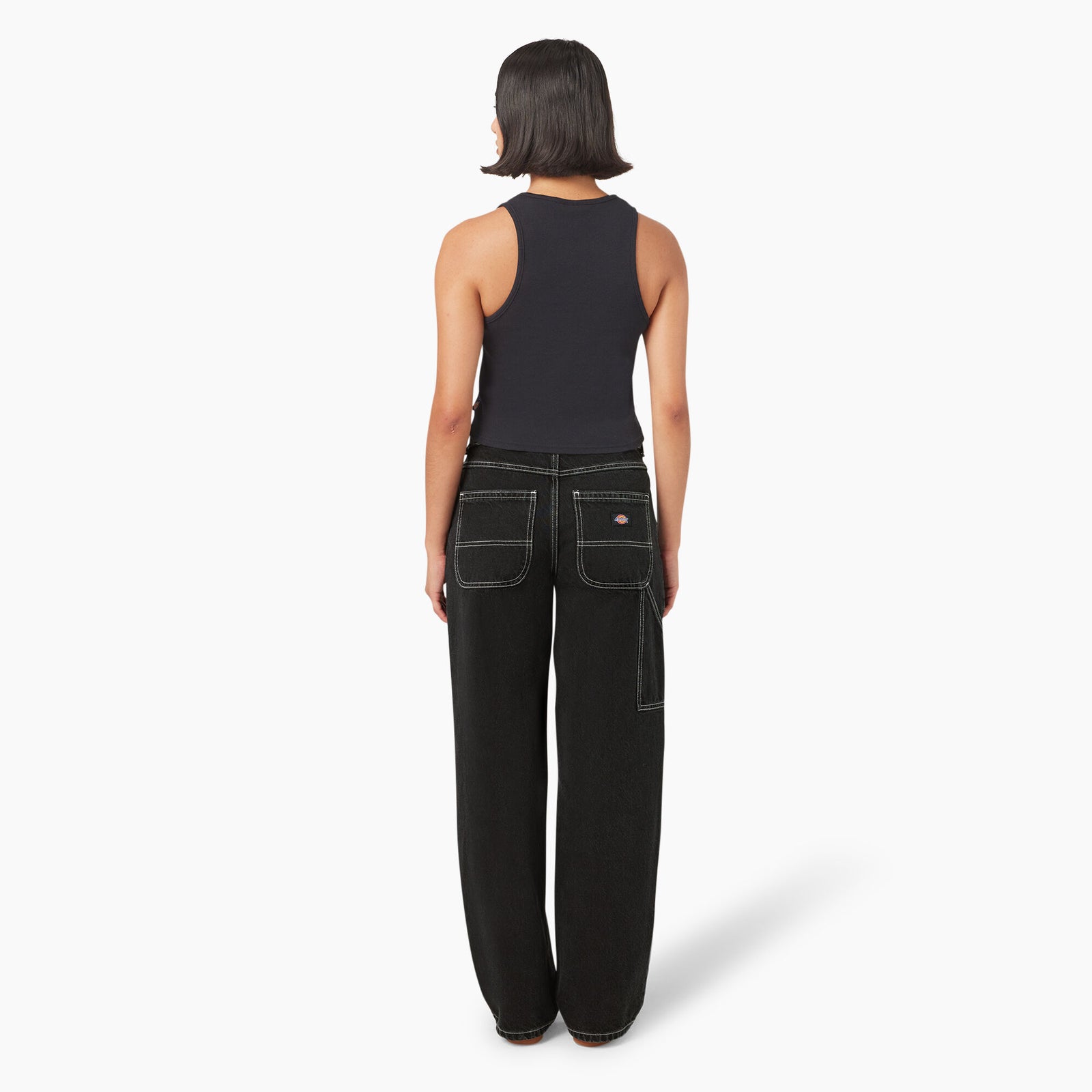 These women’s jeans are crafted from 100% cotton denim and features a mid-rise, loose fit, and straight leg style. The jeans are finished with utility styling for an authentic workwear look.