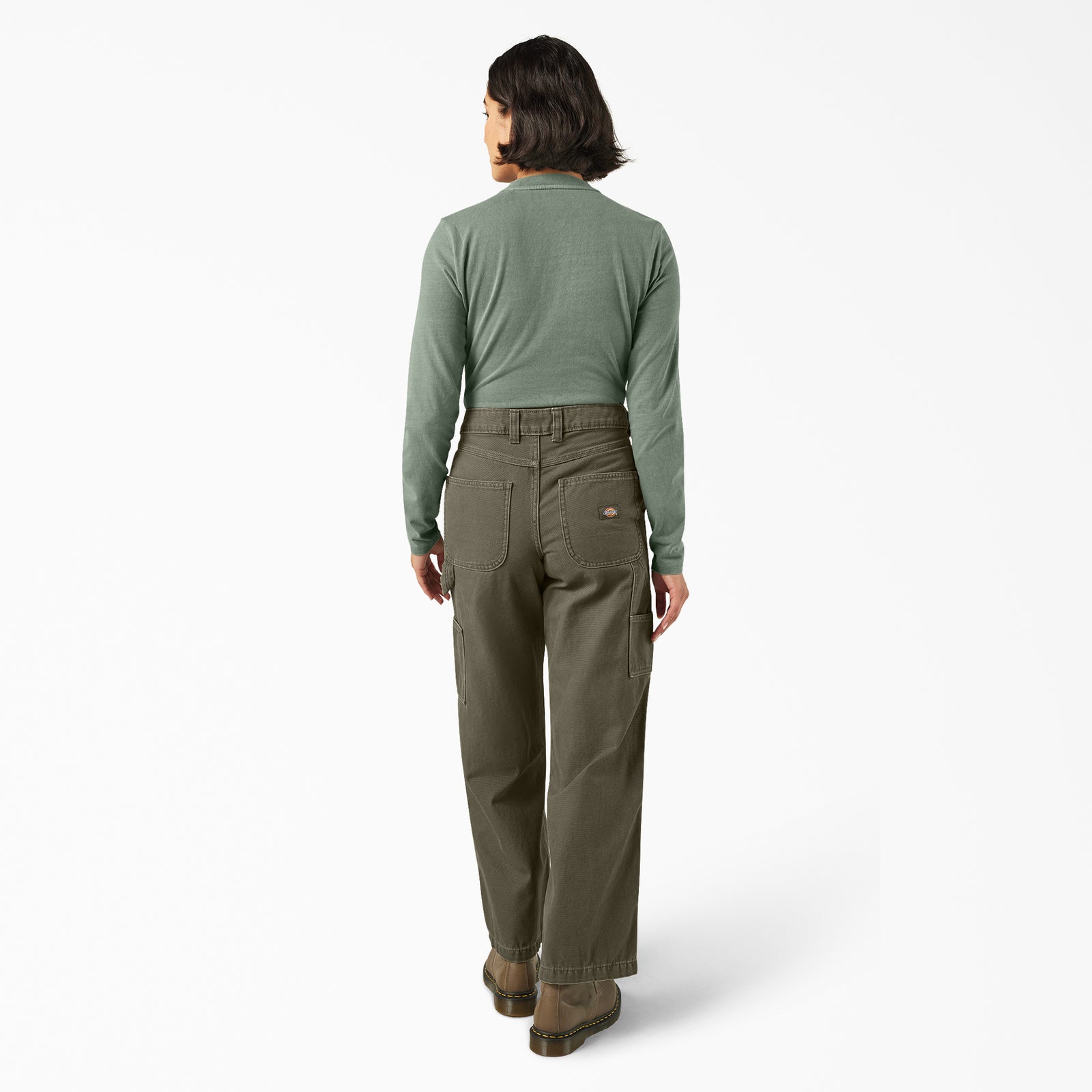 Double up on style and authenticity with these women’s double knee canvas pants. The pants have a mid rise, loose fit, and casual wide leg style. They're made from 100% cotton canvas for long-lasting comfort and utility. The pants are also equipped with double knee reinforcements for extra durability, a hammer loop, ruler pocket, extra tool pocket, and antique brass button closure.