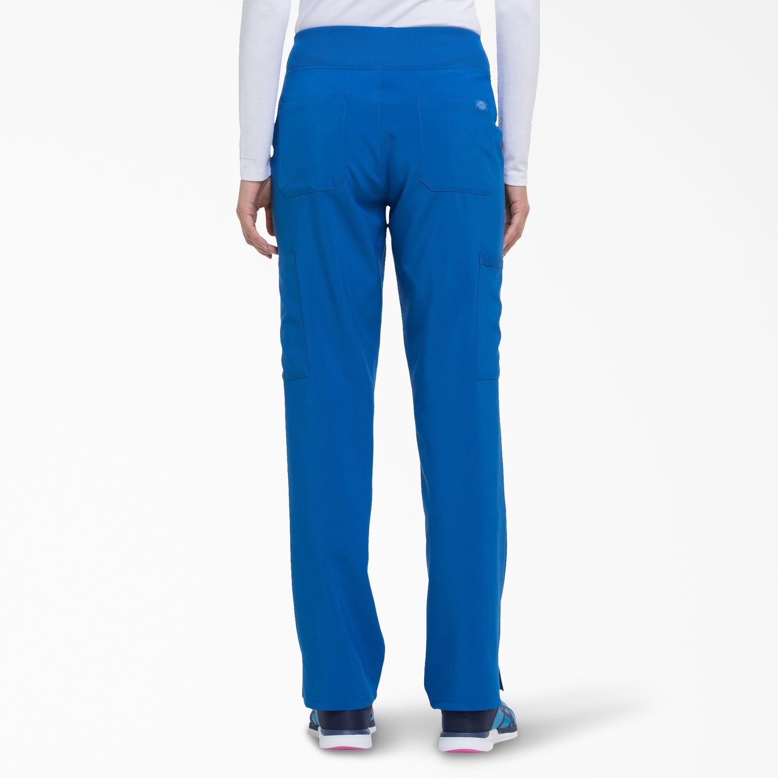 Dickies' Women's Natural Rise Tapered Leg Pull-On Pants are the ideal way to spend your next shift in comfort. The natural rise and tapered leg keeps the pants loose and comfortable. The elastic knit waistband pairs with a high percentage of spandex to let you move how you need to for any job. This pant also has high utility, built with two front pockets, two cargo pockets, two back pockets, and a scissor pocket. The final touch is side vents that keep you cool and get you to clock out.