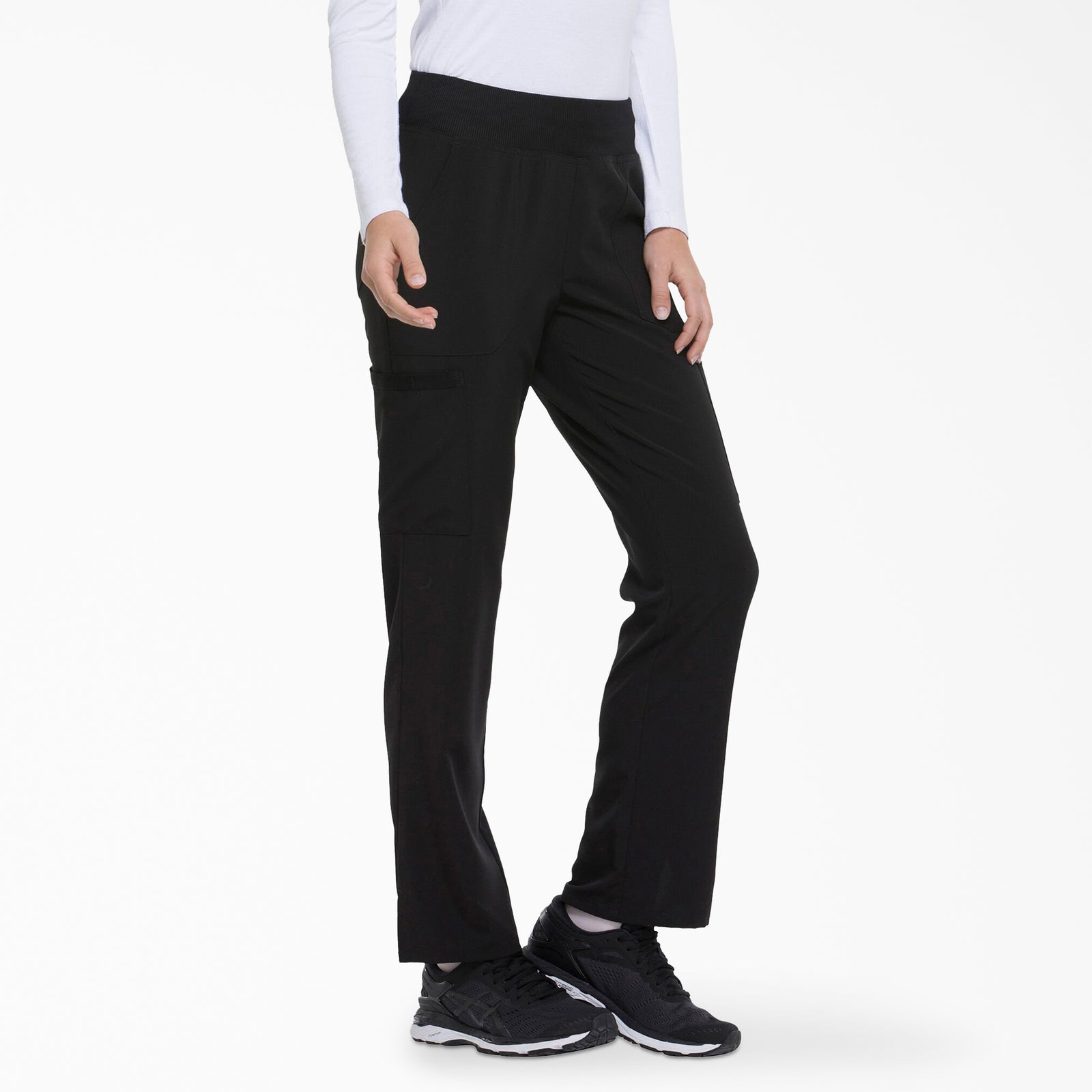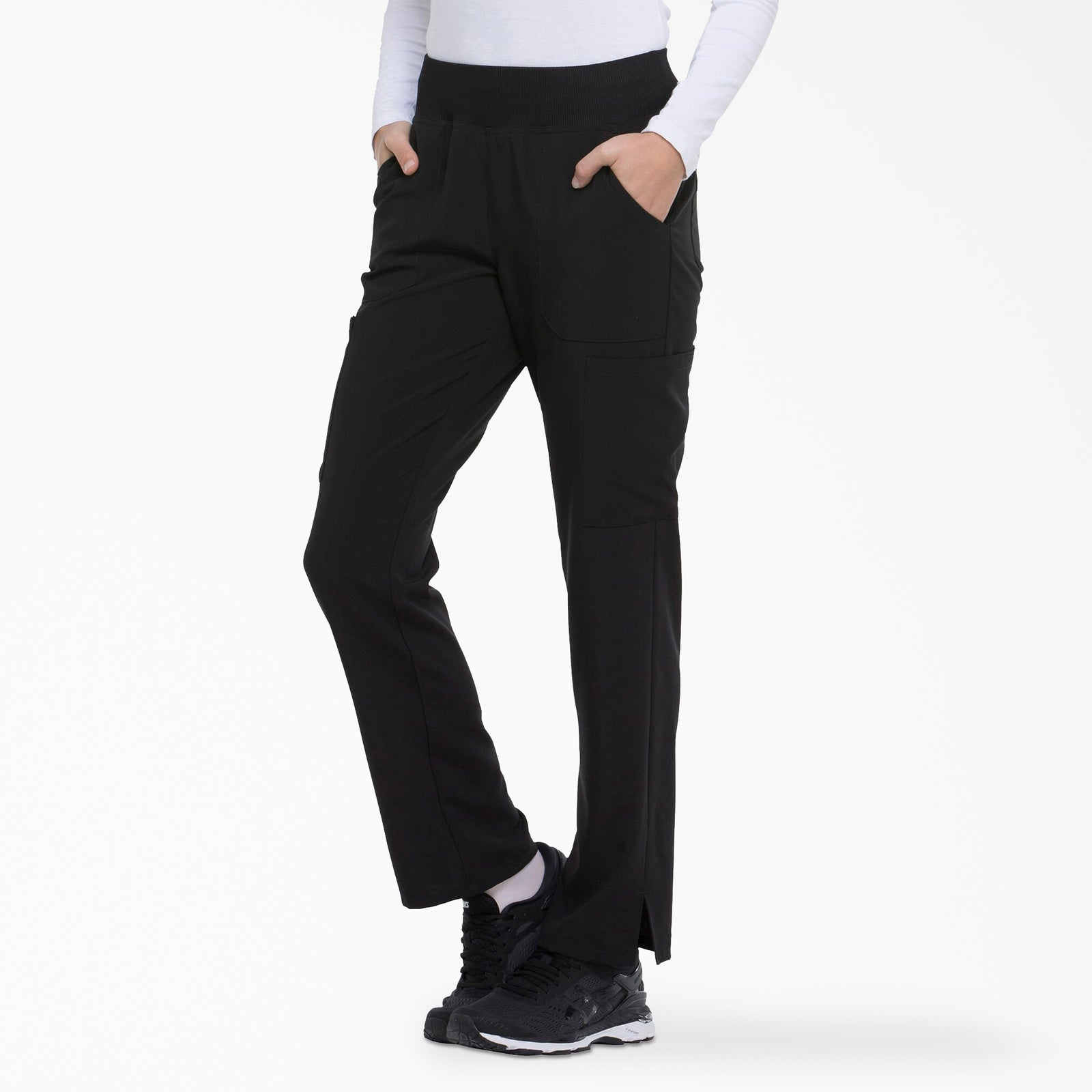 Dickies' Women's Natural Rise Tapered Leg Pull-On Pants are the ideal way to spend your next shift in comfort. The natural rise and tapered leg keeps the pants loose and comfortable. The elastic knit waistband pairs with a high percentage of spandex to let you move how you need to for any job. This pant also has high utility, built with two front pockets, two cargo pockets, two back pockets, and a scissor pocket. The final touch is side vents that keep you cool and get you to clock out.