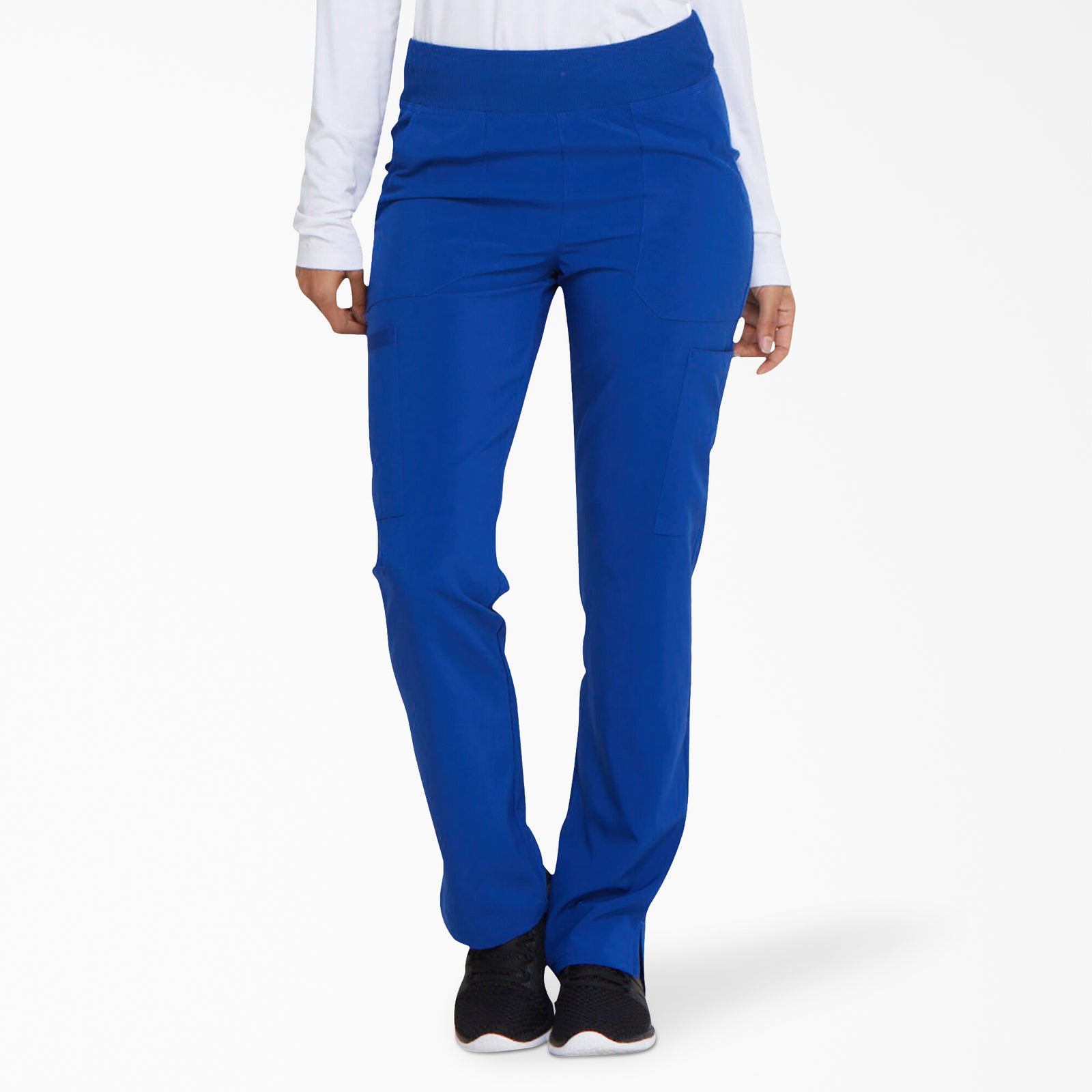 Dickies' Women's Natural Rise Tapered Leg Pull-On Pants are the ideal way to spend your next shift in comfort. The natural rise and tapered leg keeps the pants loose and comfortable. The elastic knit waistband pairs with a high percentage of spandex to let you move how you need to for any job. This pant also has high utility, built with two front pockets, two cargo pockets, two back pockets, and a scissor pocket. The final touch is side vents that keep you cool and get you to clock out.