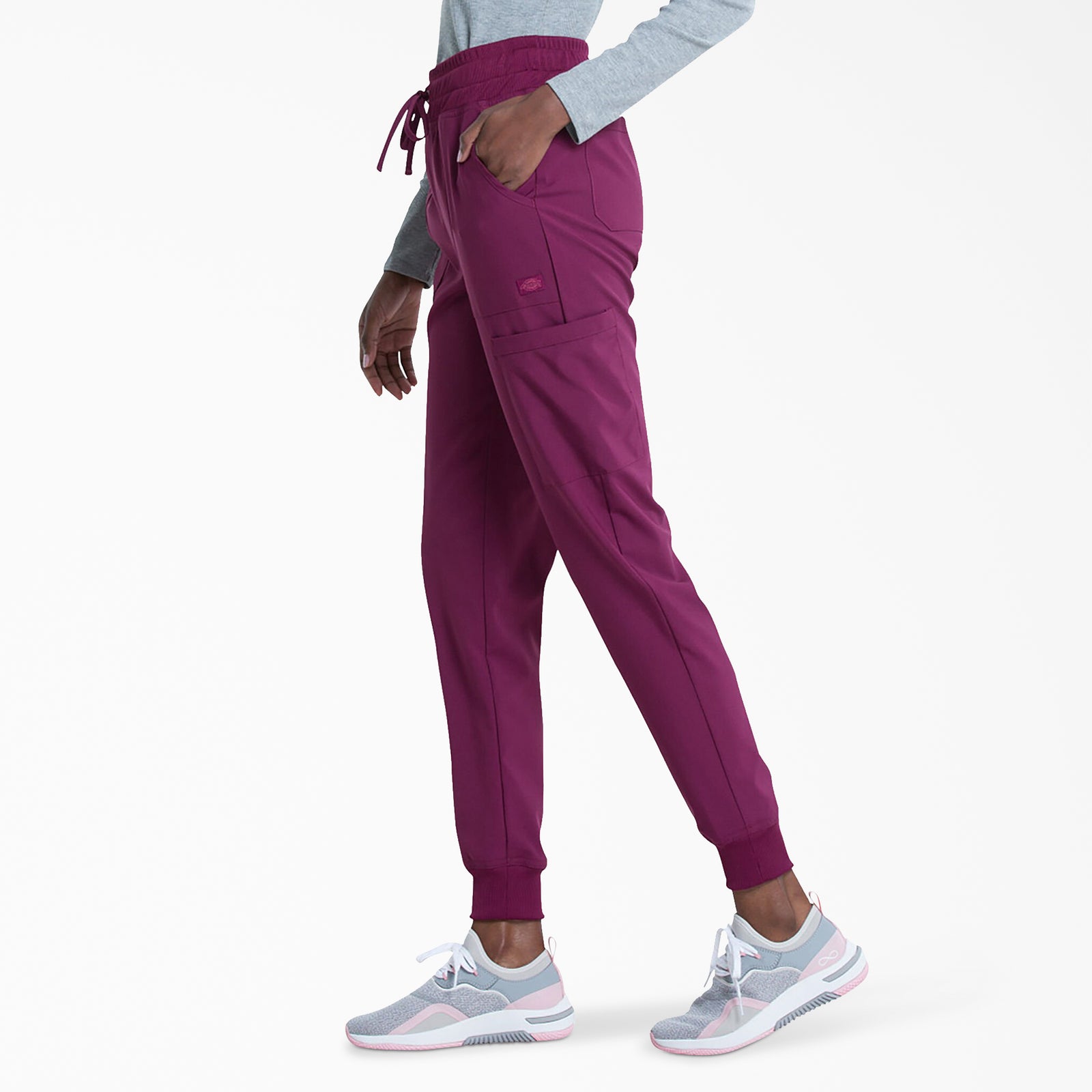 This mid rise jogger has a rib-knit covered elastic waistband with self drawstring. There are six pockets in total: two front patch pockets, two cargo pockets and two back patch pockets. Top of back pockets are finished with reverse hem for subtle design detail. Logo tape instrument loops inside wearer's right cargo pocket. Rib-knit cuffs complete the look.