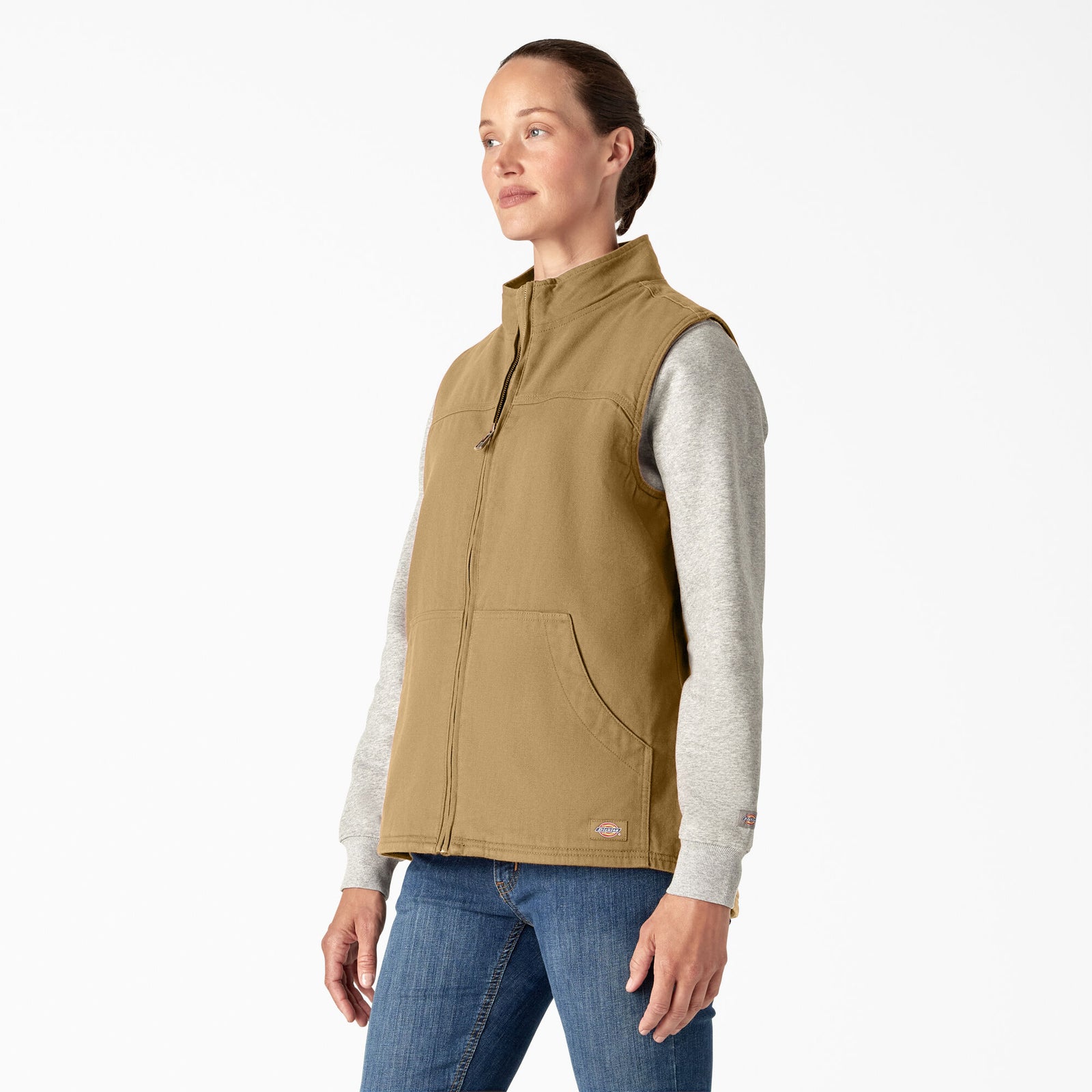 Don’t let winter weather stop you from getting the job done. This women's vest is built to handle the cold with its durable, wind resistant duck canvas exterior and high pile fleece interior. The vest also features a relaxed fit for easy layering, lined lower pockets, and triple needle stitching.