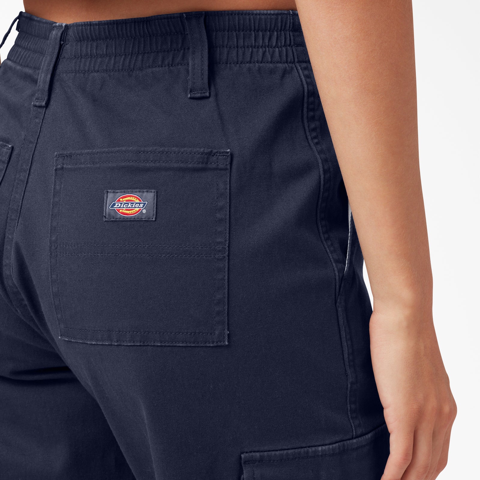 The Dickies Women's High Rise Fit Cargo Jogger Pants have a proper jogger fit, tapering at the ankle, along with plenty of practical pocketing. Elastic along the back waist provides a comfortable custom fit for easy all-day wearability and straightforward styling that works all year round. This simple style has a tack button closure and dual front slash pockets. The high-rise, flat-front cargo pants also feature rear patch pockets and functional dual-side cargo pockets. These pants are good for both the workplace and the weekend.
