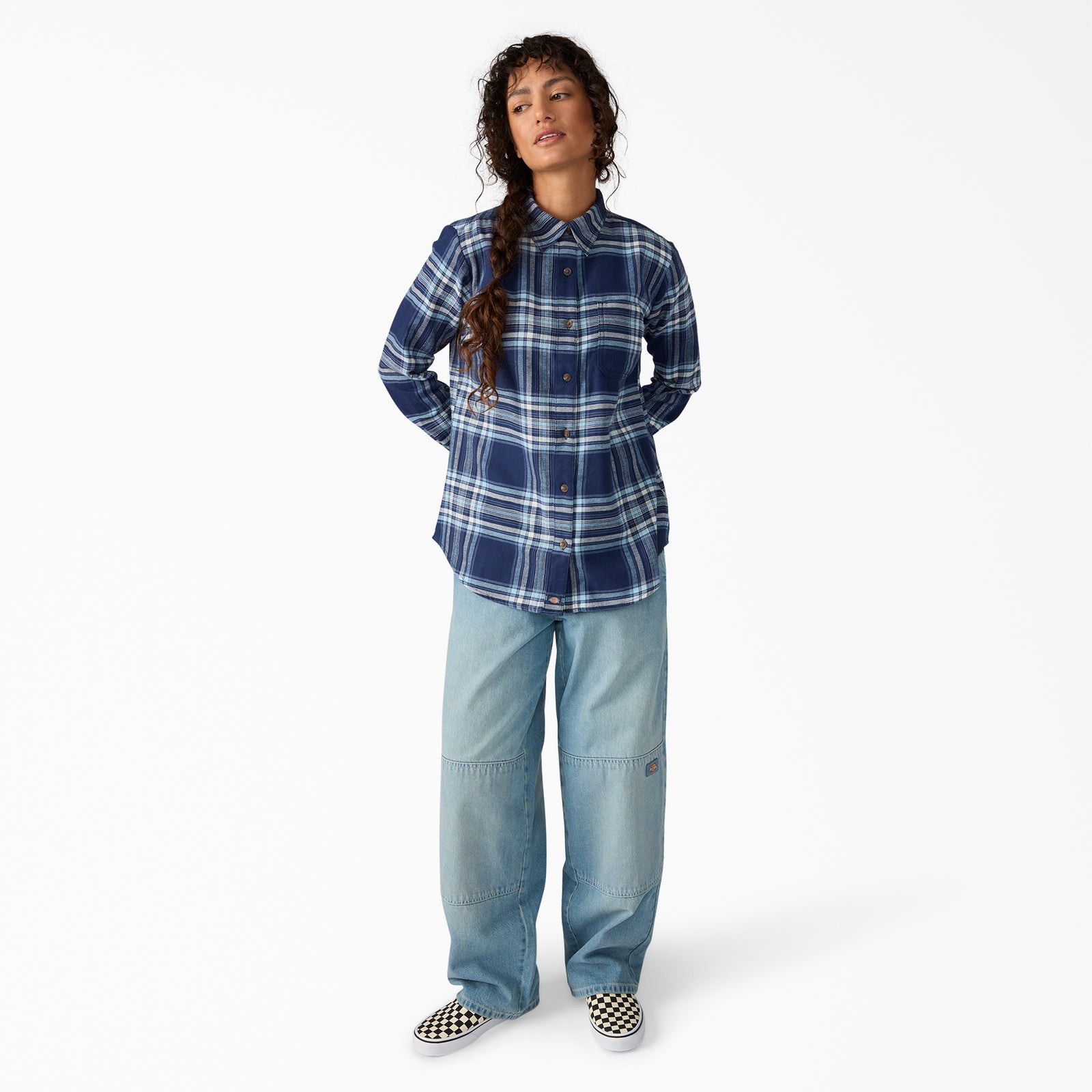 Basic gets business done with Dickies' Women's Long Sleeve Plaid Flannel Shirt. A simple design with matching front placket and pocket to keep you looking your best. The 100% cotton construction keeps it comfortable, while the double-brushed design keeps it soft.