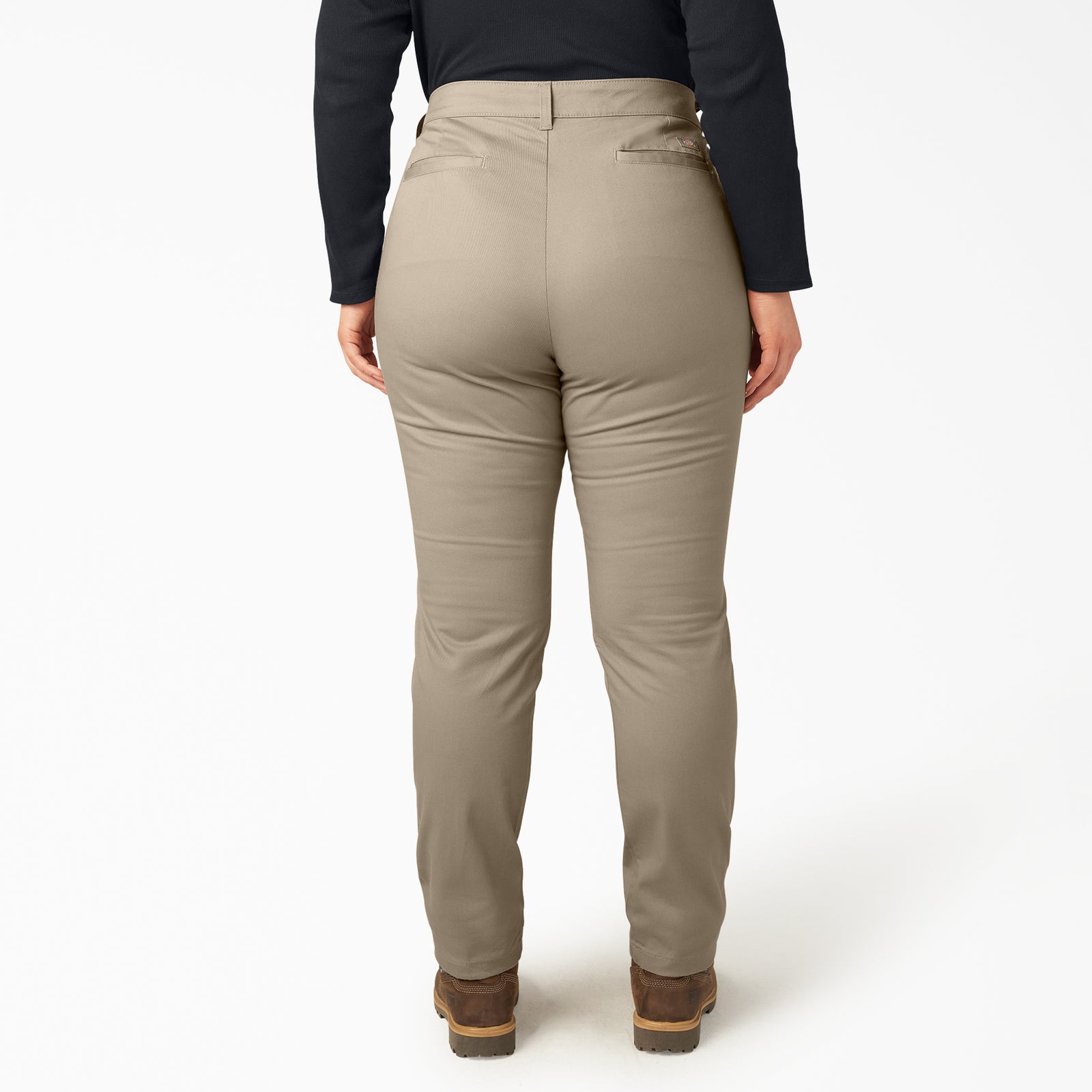 Don't sacrifice the perfect fit when it comes to your favorite skinny pants. Dickies Women's Plus Mid Rise Skinny Leg Pants offer straight forward styling with features that enhance your comfort and mobility day in and day out. The slight stretch twill fabrication allows for ease of movement and the contoured waistband prevents gapping in the back. Sitting just below the waist, these go-to skinny pants are equipped with a front button closure and dual back welt pockets, ensuring easy wearability at work or for casual everyday styling.