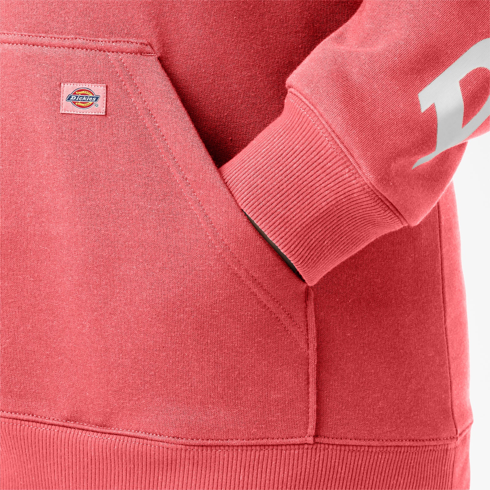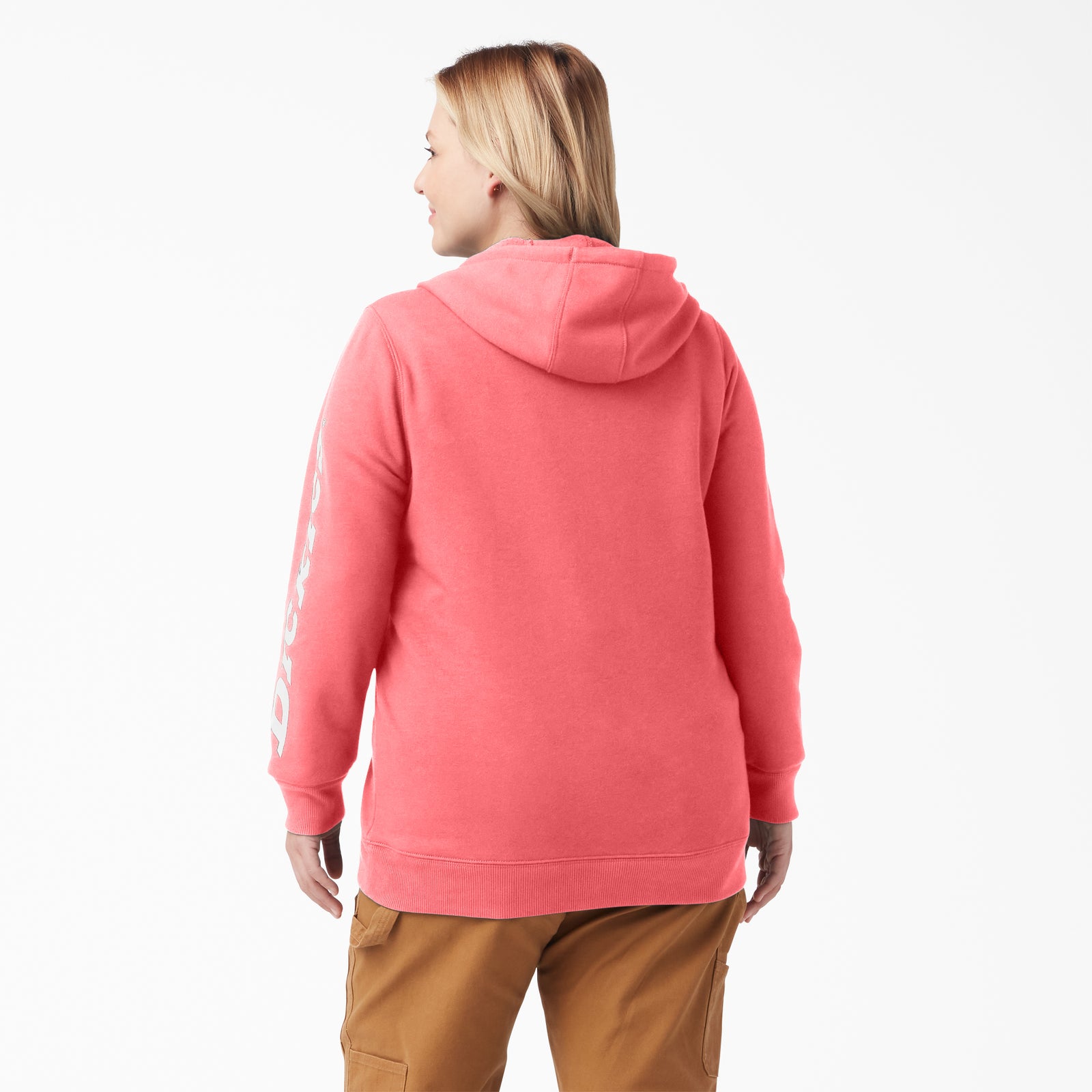 Dickies’ Women's Plus Water Repellent Sleeve Logo Hoodie is made of fleece, so it feels cozy and comfortable. Yet it's as strong and durable as you. This plus size hoodie features the same design as our regular women's hoodie. Double-needle stitching and the Durable Water Repellent (DWR) finish add strength and protection on wet days. The crossover neckline, three-piece adjustable hood, and rib-knit waist and cuffs add strength, durability, and comfort, even in rough weather conditions. Use the front kangaroo pockets to store small work essentials–or just to keep your hands warm. The Dickies Wordmark graphic logo adds style.