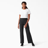 Stay moving freely in comfort and style in a feminine fit that works for you. Dickies Women's High Wide Leg Twill Pants offer straight forward styling with features that enhance your comfort and mobility day in and day out. The slight stretch twill fabrication allows for ease of movement and the contoured waistband prevents gapping in the back. Sitting at your natural waist, these go-to wide leg pants are equipped with a front button closure and dual back welt pockets, ensuring easy wearability at work or for casual everyday styling.