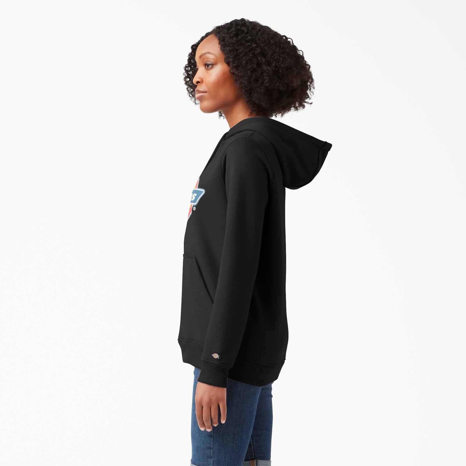 Dickies’ Women's Water Repellent Logo Hoodie works as hard as you do. And the soft fleece adds comfort to your day. With reinforced double-needle stitching at the seams and the Durable Water Repellent finish, this hoodie gives strength and protection in wet conditions. The crossover neckline, three-piece adjustable hood, and rib-knit waist and cuffs also help you work in wet conditions while staying comfortable. Store small gear in the kangaroo pocket at front, or use it to quickly warm your hands while on the go. The Dickies tri-color logo graphic adds style to your workday, too.