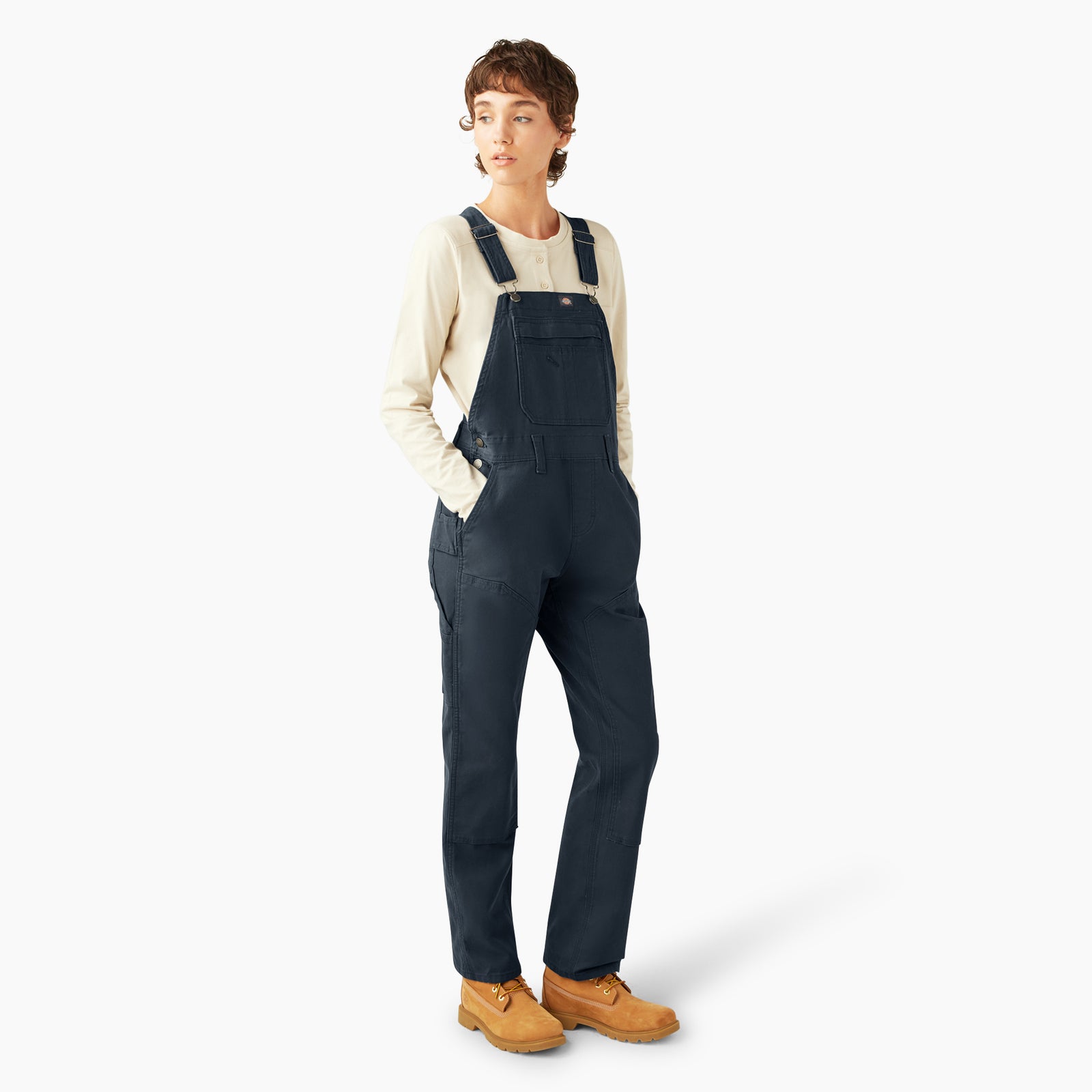 Dickies Women's Double Front Bib Overalls are a must-have staple in your workwear wardrobe. Made of cotton-blend denim and duck fabrics, enjoy utter comfort and mobility throughout the day. The overalls also have reinforced double front panels, and even offer space for knee pads. Other features include a straight leg style, utility loop, and an impressive array of pockets (a whopping 11 in total!), including a secure zippered bib pocket, hidden back pocket, and three tool pockets. Functionality and style? Who says you can't have it all?