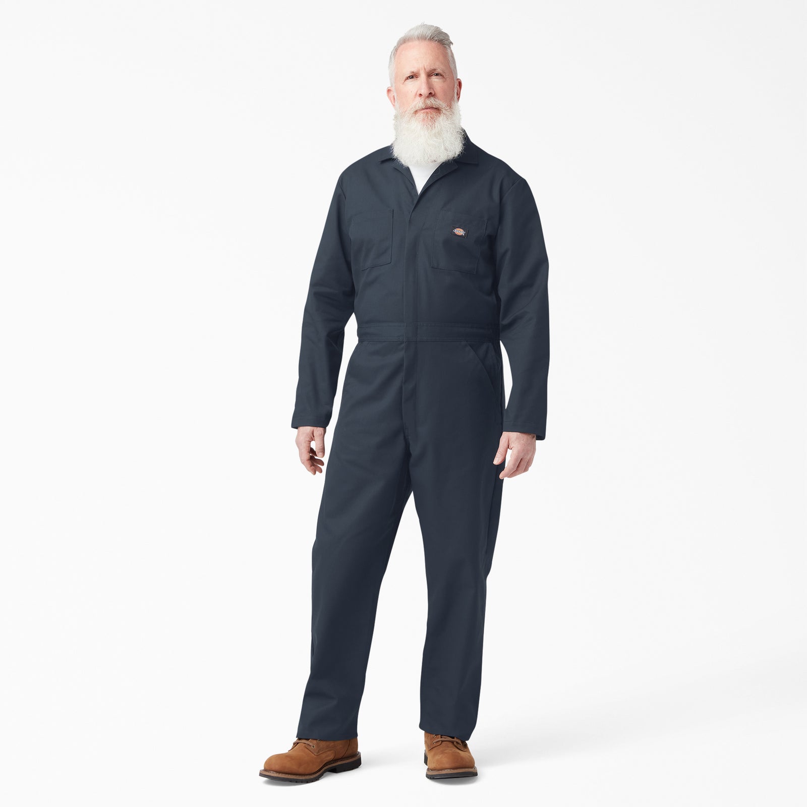 Grease, grime, dirt, insulation—these are just some of the things that stand no chance against Dickies' Basic Blended Coverall. This coverall handles just about anything your work can throw at it. Durable, yet breathable, polyester/cotton twill resists fading, wrinkles and stains. Heavy-duty, two-way front brass zipper with concealed snaps at neck and waist stays flat. Handy ruler/tool pocket on right leg. Expandable comfort waist with elastic inserts keep you comfortable.