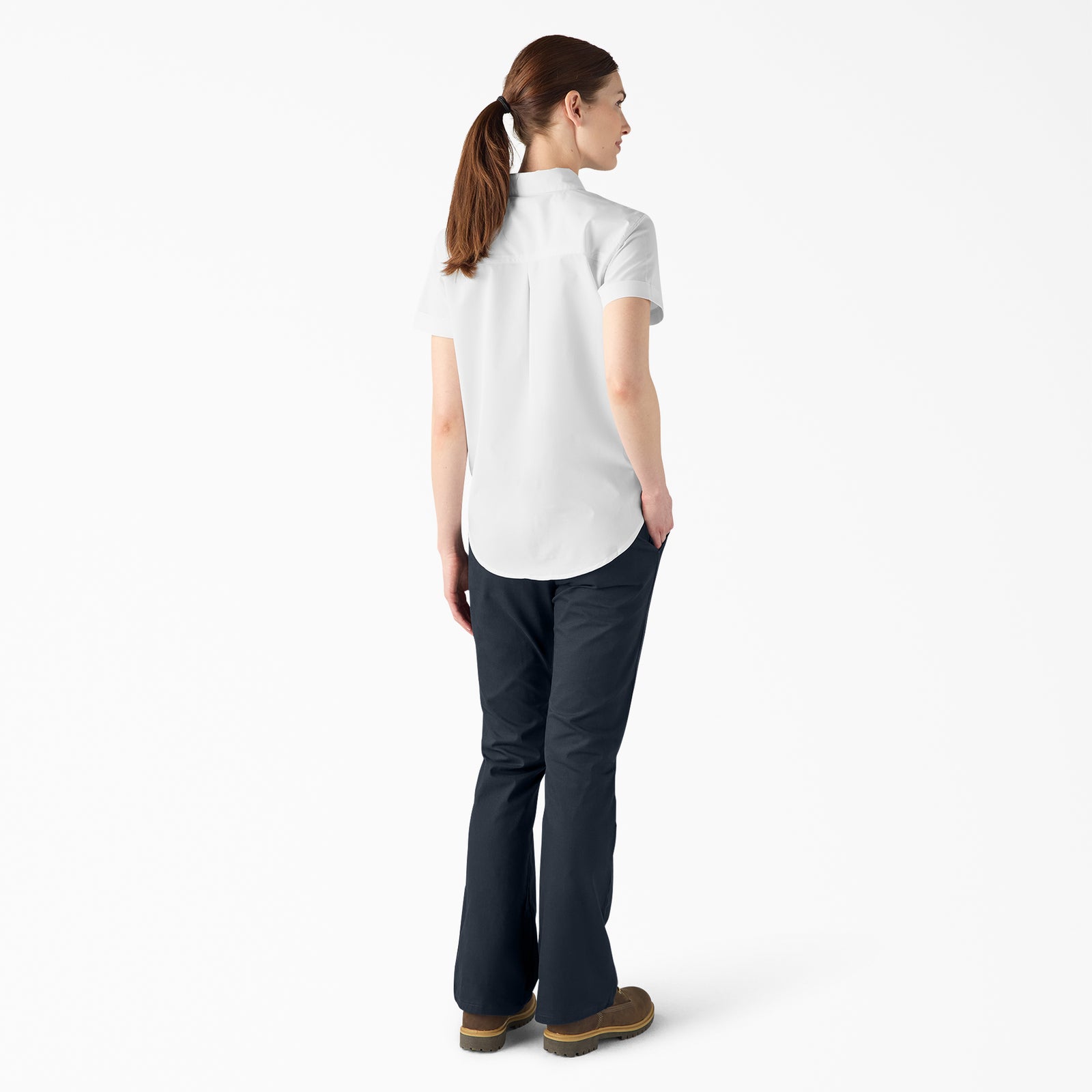 Dickies Women's Button-Up Shirt is a perfect addition to your workwear wardrobe. This stretchy shirt is designed in a durable stretch poplin material for a comfortable fit and soft feel, with bust darts that provide a more fitted look. The back pleat ensures that you can move around freely, while the hi-lo hem offers more coverage at the back. With its classic button-down collar, this Women’s Stretch Button-Up Shirt is a soft staple you can count on so that you can focus on the task at hand.