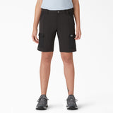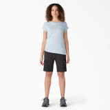 Durable and stylish when the heat is on, Dickies Women's Cooling Slim Fit Cargo Shorts, 10" are a great work companion. Our slim fit style, crafted with bi-stretch fabric, offers 360° freedom of movement. Our advanced Temp-iQ® intelligent cooling technology adapts to your core body temperature to keep you cool when things heat up, with a moisture-wicking finish that combats sweat so you stay dry. The shorts feature plenty of secure storage with Durable Water Repellent abrasion-resistant pockets. Our reflective Dickies logo offers added visibility.