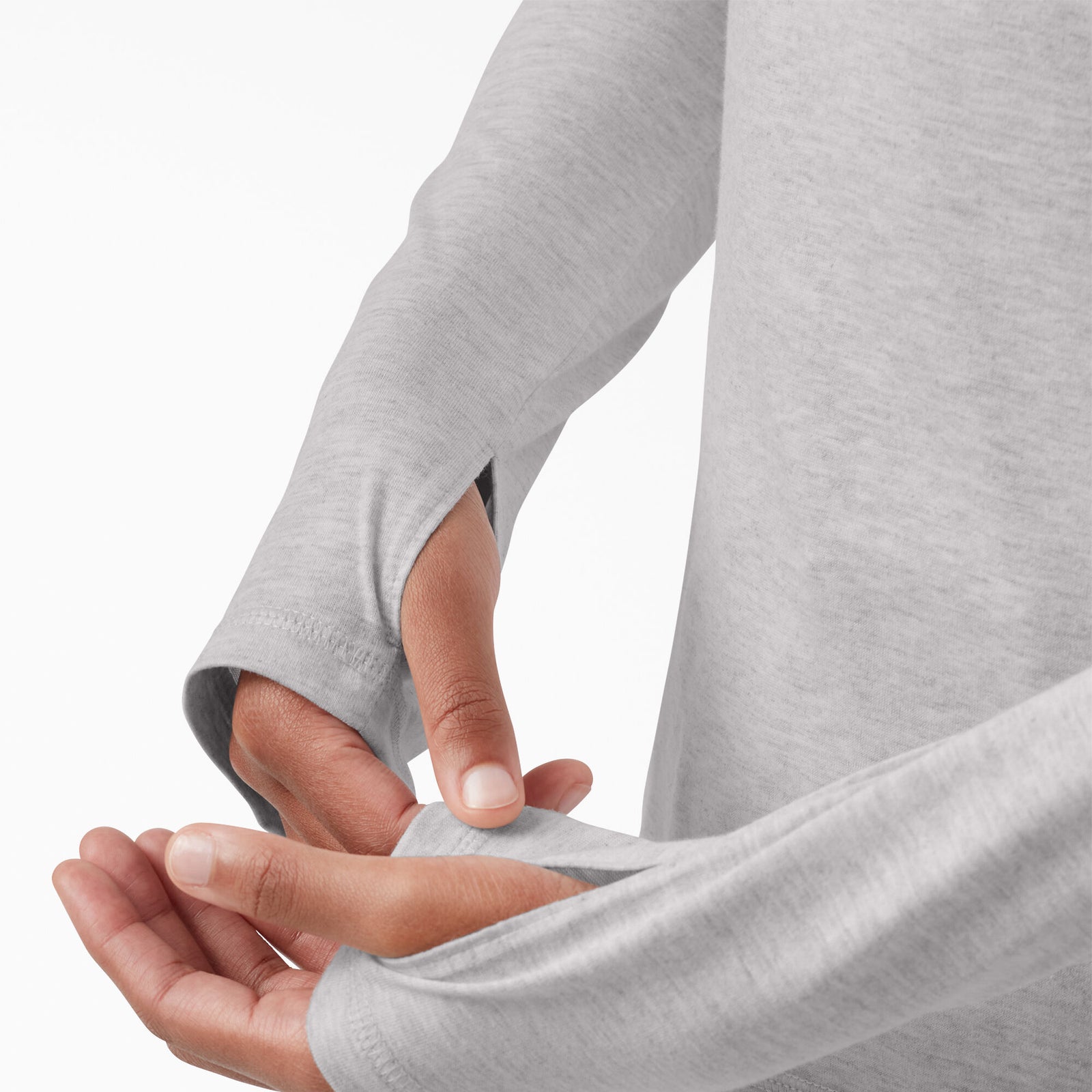 Stay cool for peak performance when heat strikes with Dickies Women’s Cooling Performance Sun Shirt. Our Temp-iQ® intelligent advanced cooling technology regulates core body temperature, and the fabric wicks away moisture to keep you cool and dry in the sun. UV rays are no match for the UPF 40+ protection embedded in our super-cozy cotton/polyester blend. Long raglan sleeves feature anchor thumbholes to keep them perfectly in place. Get extra protection for your head and neck whenever you need it with a built-up neckline and three-piece hood. The shirt also has a functional chest pocket with pencil divider.