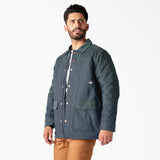 This Dickies Men's Waxed Canvas Chore Coat has a classic design and a relaxed fit that's perfect for the workplace. Made of strong cotton duck canvas, the wind-resistant jacket has a wax-coated fabric, with triple-needle reinforced stitching and a Durable Water Repellent finish. The chore coat has a full-zip closure and a snap-close storm flap. You can keep your items secure in the coat’s three exterior utility pockets and a back hem stash pocket.