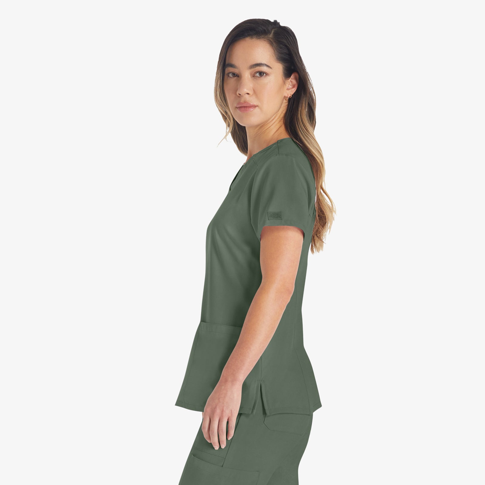 Put on a top that doesn’t clock out with Dickies’ Women’s V-Neck Top. Made of a polyester blend with 5% spandex, this top will stretch with your every move. The front yoke and utility twill tape add to the durability, staying tough-as-nails through every patient. Patch pockets and a pen slot help to see you organized as you check off your to-do list.