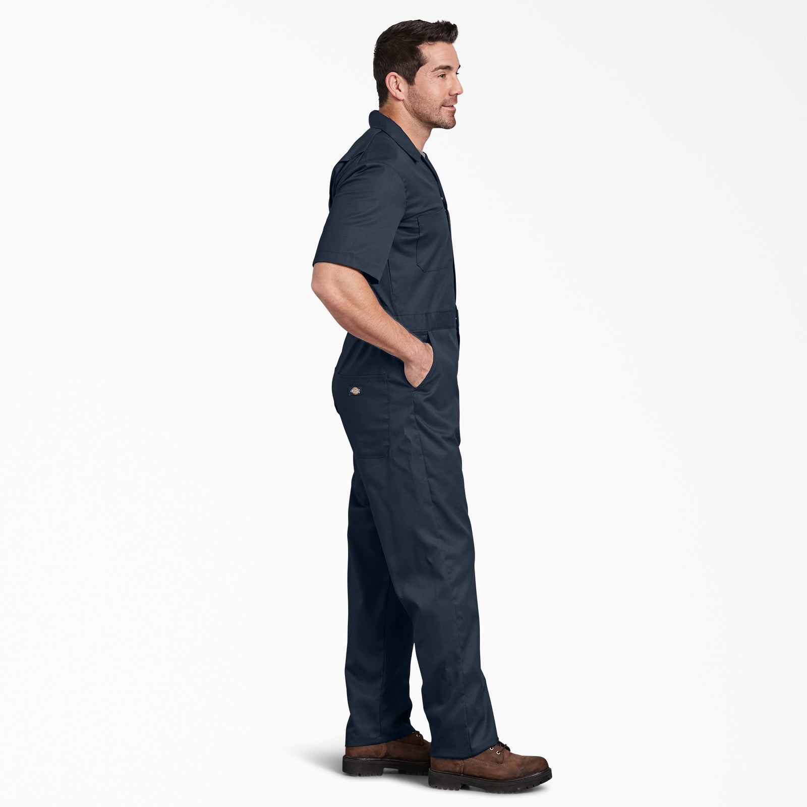 Get on-the-job coverage with no need to roll up your sleeves, with the Dickies Flex Short Sleeve Coverall. Freedom of movement and easy, breathable fabric add up to a coverall that checks every box. A generous cut has elastic to fit smoothly, with concealed snaps for security and pockets everywhere you need them.