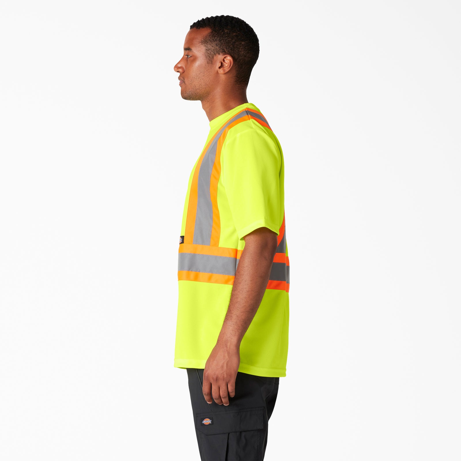 Highway work or any job that takes you outside in the dark will benefit with the help of Dickies Hi Vis Short-Sleeve Safety T-Shirt. The mesh design is covered in reflective tape that keeps you highly visible at night. This breathable t-shirt also is made with moisture-wicking fabric to help you stay cool and dry.
