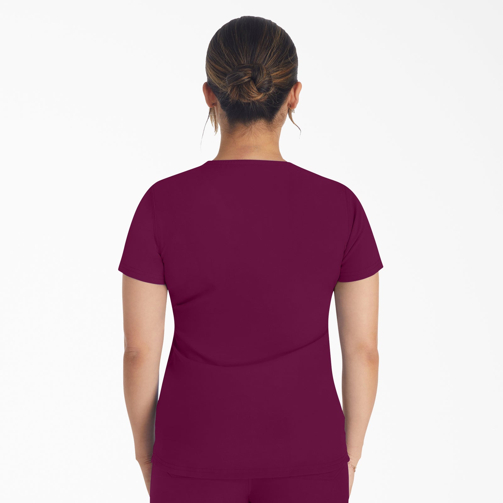 This Contemporary fit round neck top features a henley neckline with decorative logo snaps on the placket and multi-needle stitching on the neckband. There is one chest patch pocket with decorative stitching and a bar tacked pen/instrument slot. Decorative topstitching on all seams. Rounded hem can be worn tucked or untucked.