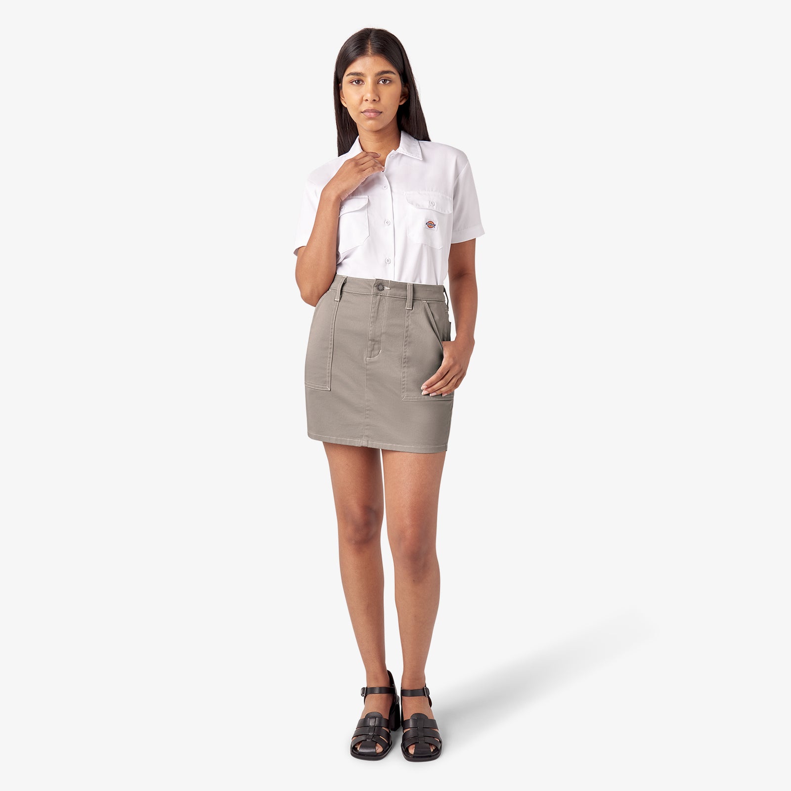 With oversized utility pockets and carpenter details, the Women’s High Waisted Carpenter Skirt has a simple, no-frills style and a regular fit. The high-waisted skirt has contrast stitching and matches well with t-shirts and even crop tops. You can easily fit your phone in one of the skirt’s front patch pockets or utility back pockets. Made from our FLEX fabric, you’ll have all-day comfort with this stylish yet practical skirt, which is durable enough for the workplace and beyond.