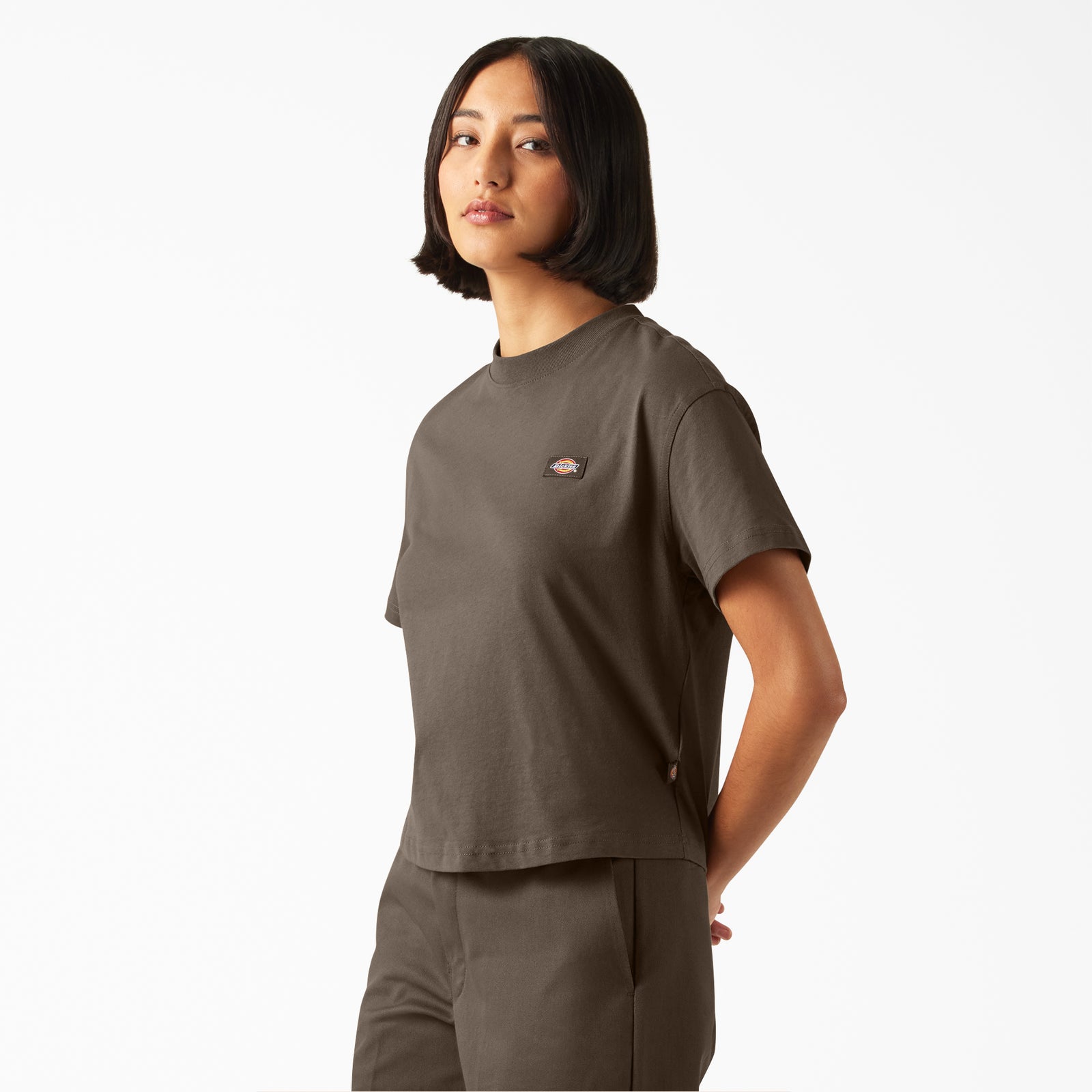The Oakport tee features a boxy fit and cropped length for a casual look. The t-shirt has flat locked seam detailing and is made from a comfortable jersey fabrication.
