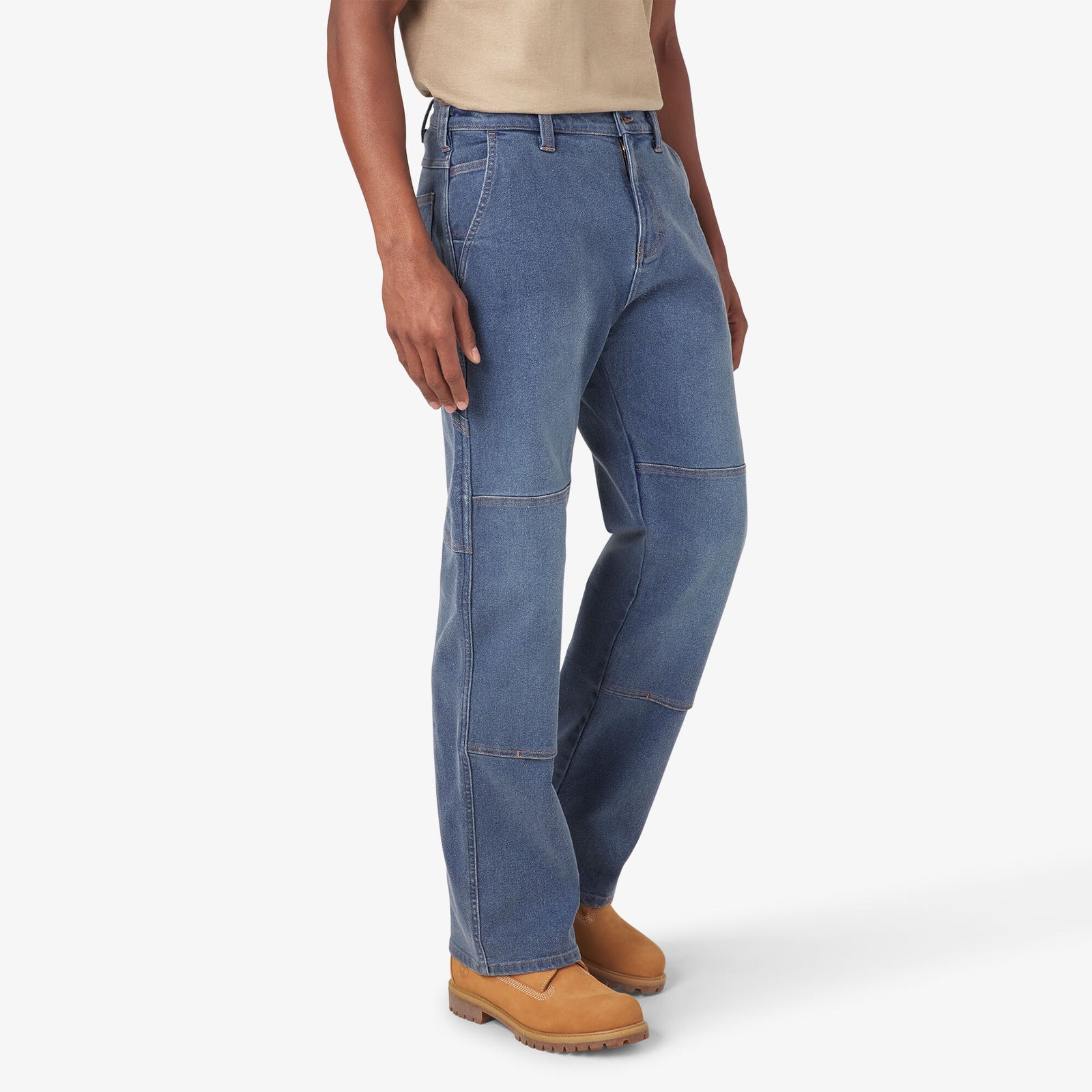 Keep your knees protected as you work on the ground. Our Men's FLEX Relaxed Fit Double Knee Jeans have openings for knee pads, so you can insert your protective wear without any fuss. These Double Knee Jeans feature a roomy, relaxed fit, with flexibility thanks to the FLEX fabric technology. The pants come in a classic straight-leg style, with utility pockets and a hammer loop. They can handle the most rough and tough workplace days, with a durable stretch that moves along with you.