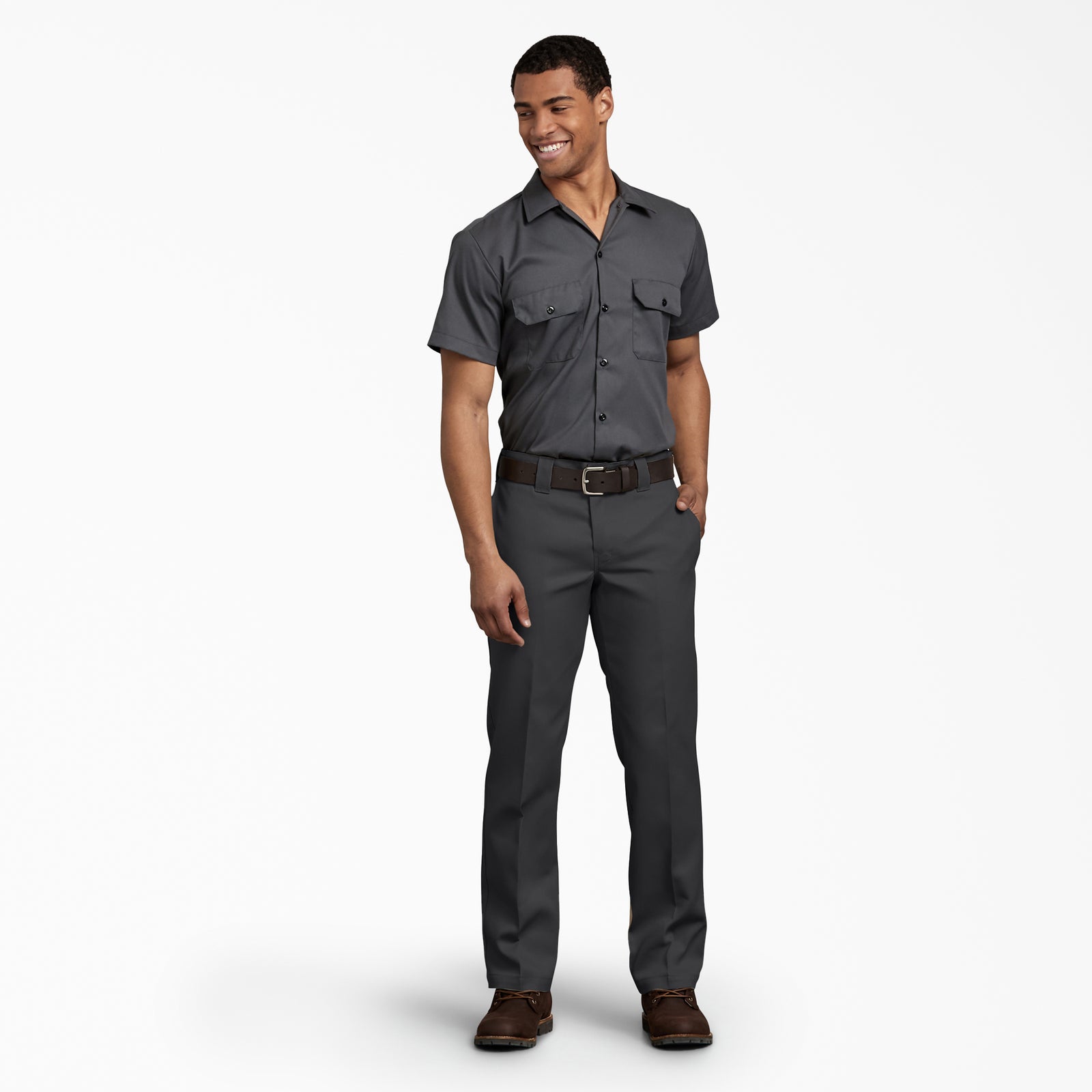 Dickies Men's 873 FLEX Slim Fit Work Pants are made of durable materials that give you the dependability you need, no matter where your workday takes you. These wrinkle-resistant and stain-resistant pants sit below the waist and have a slim fit through the seat and thighs, with a straight leg. Wide belt loops help evenly distribute weight. And the FLEX fabric has a moisture-wicking finish to help you keep cool, dry, and comfortable all day long.