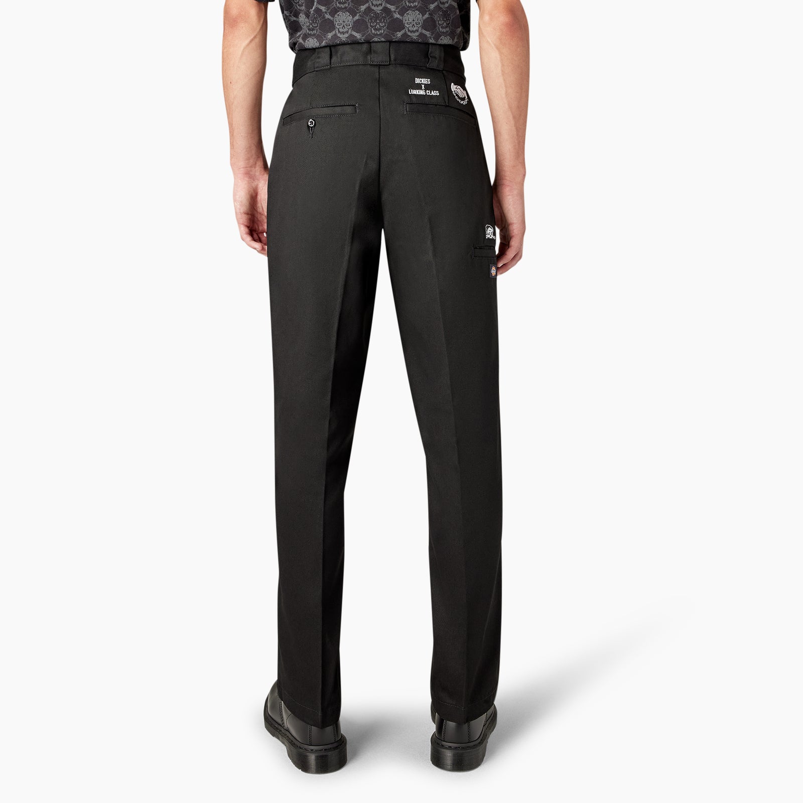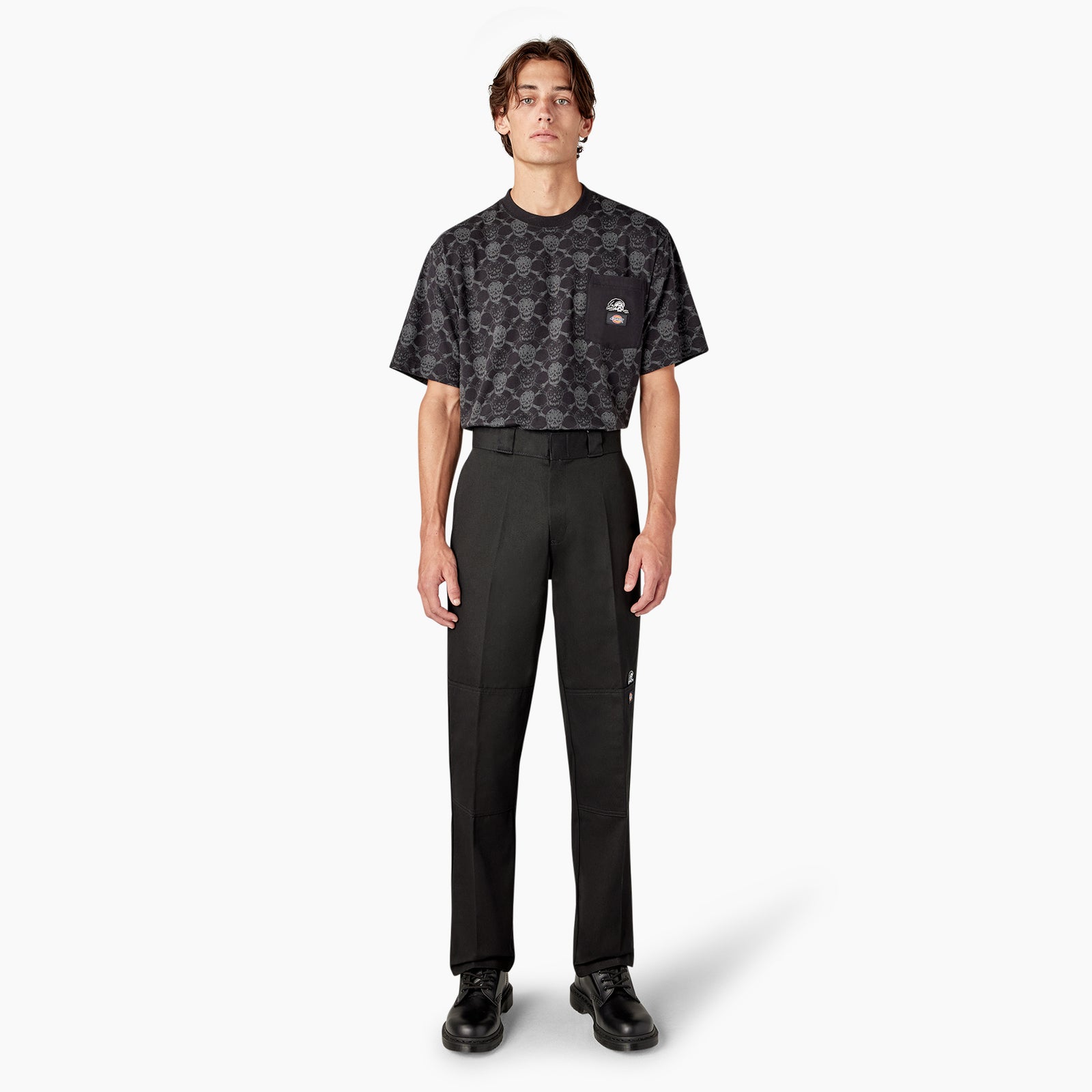 Our classic double knee silhouette meets signature Lurker embroidery in this Dickies x Lurking Class style. The double knee pants feature a regular fit as well as a custom skull & crossbones printed interior waistband and pocket lining. They’re also decorated with Lurker embroidery above the knee, side pocket, and back pocket.