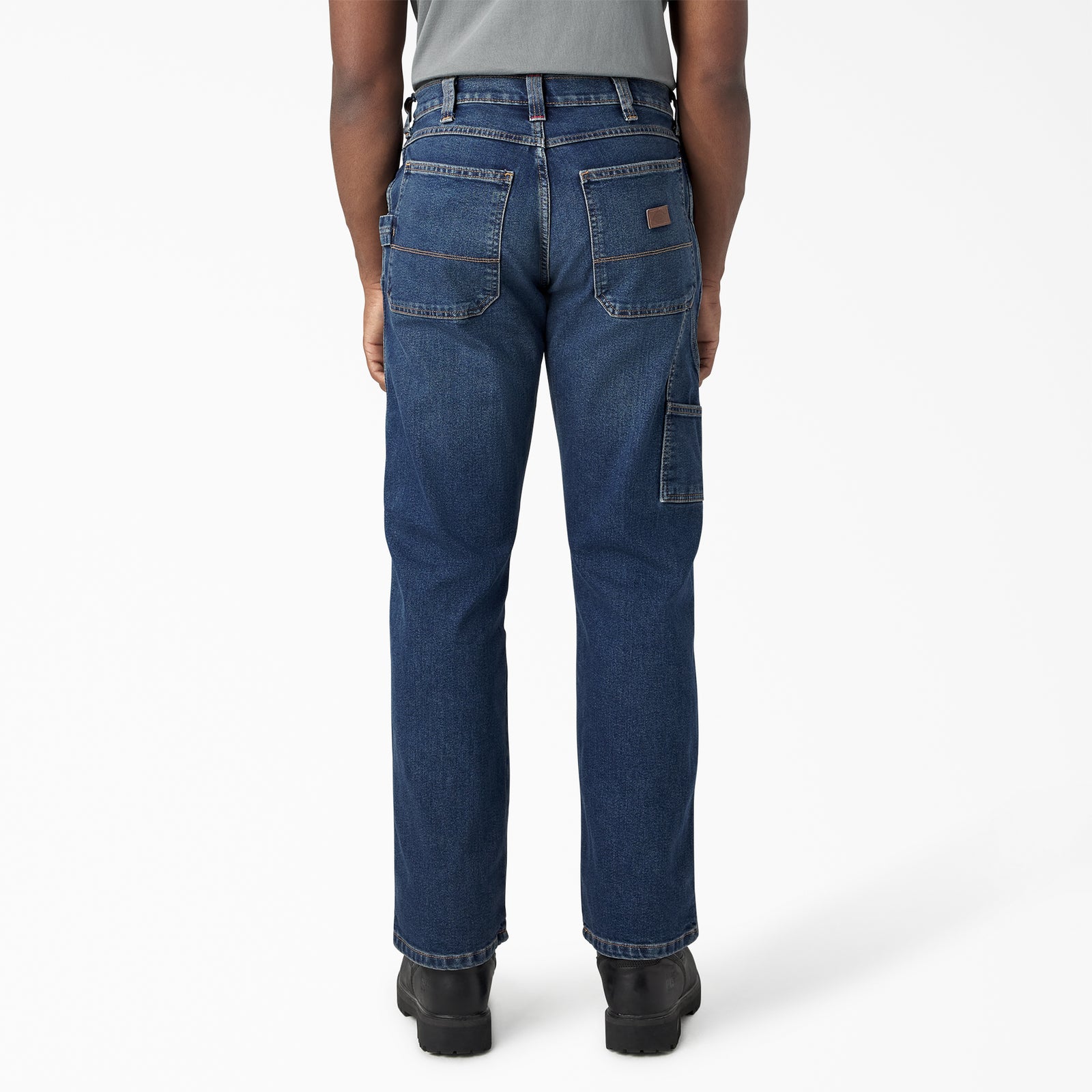 These Men's FLEX Relaxed Fit Carpenter Jeans bring another side to carpenter pants. A relaxed fit style provides extra room in a straight leg style, with double-needle reinforced stitching for stability. These jeans are constructed from FLEX cotton-blend denim, offering stretchable comfort throughout the workday. We've also added a tape measure loop, utility pockets, and even a ruler pocket. So you can keep all your tools within easy reach, yet out of your way.