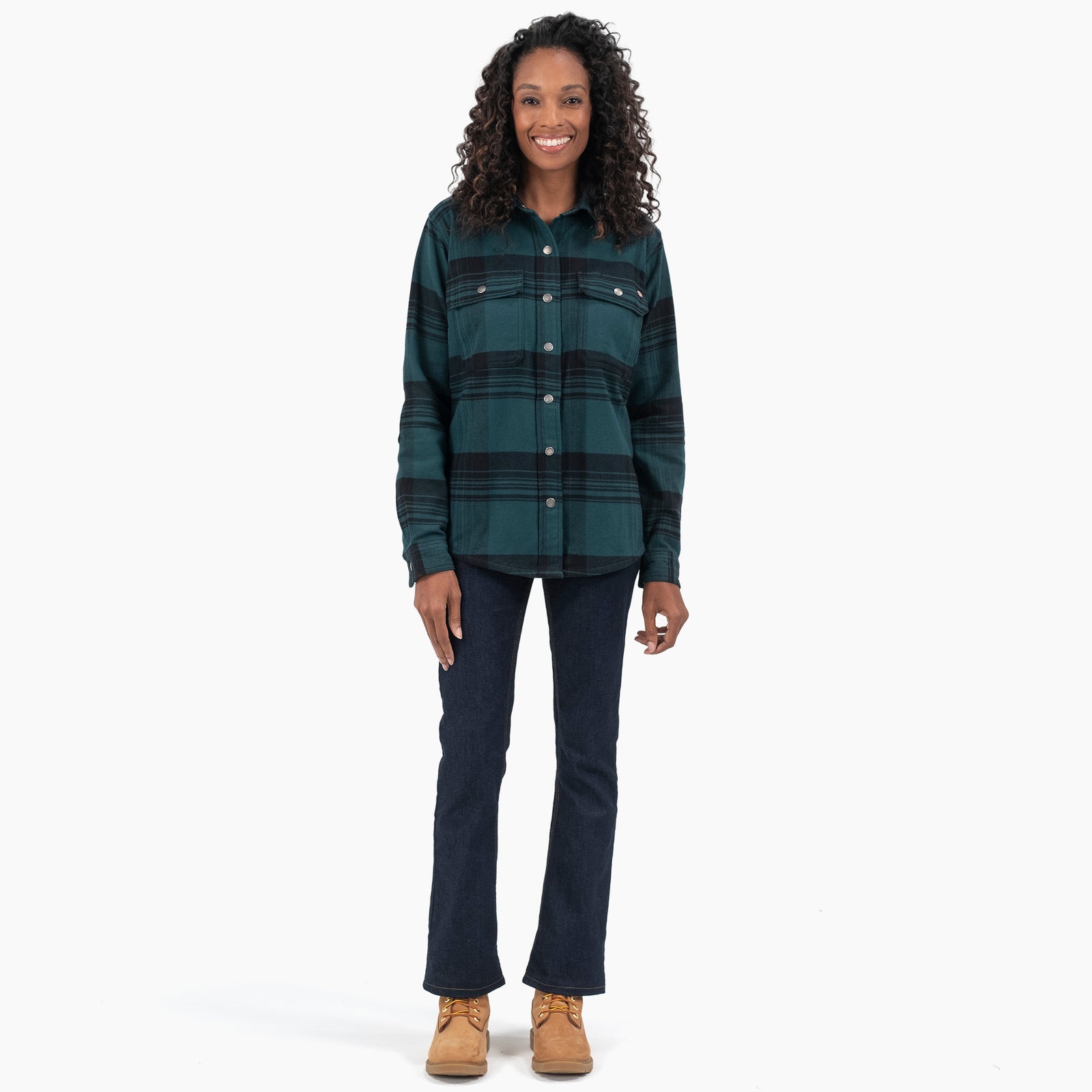 Double the strength and double down on your cold weather style in Dickies Women’s DuraTech Renegade Flannel Shirt. This durable, heavyweight flannel work shirt is two times stronger than our original and features a Durable Water Repellent finish. This feel-good dual-purpose shirt or jacket delivers on more than just warmth and strength. Design highlights include metal snap front closures for strength, abrasion elbow patches for added durability and armhole gussets for extra reach. You’ll find added utility through the double front chest pockets with snap closures, a perfect place to secure your small belongings throughout the day. Plus, the convenient pencil division at the front left pocket will ensure that you’ll be hands free and ready to tackle any task. Dickies logo label is proudly displayed at the front chest pocket to show off your pride for uncompromising performance workwear.