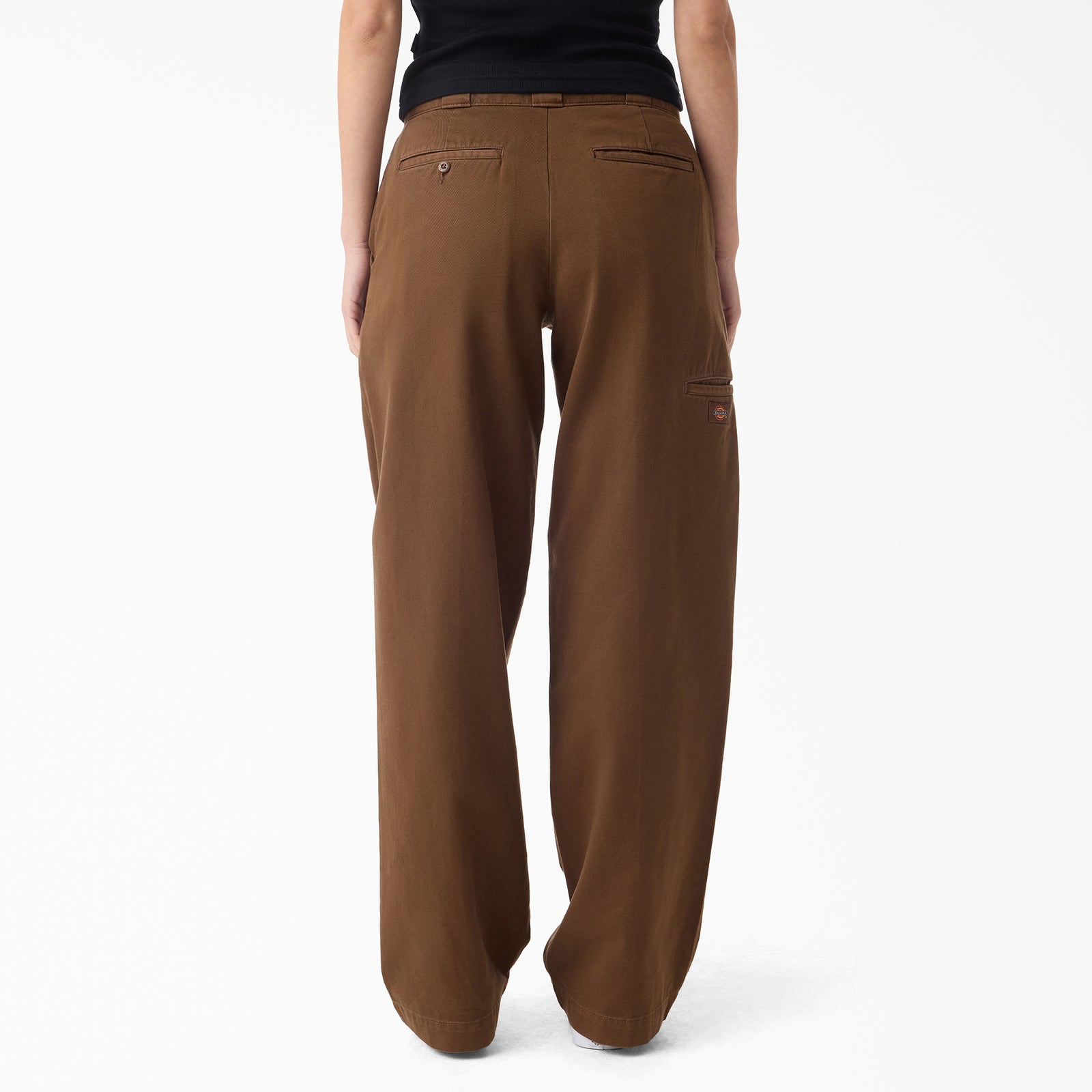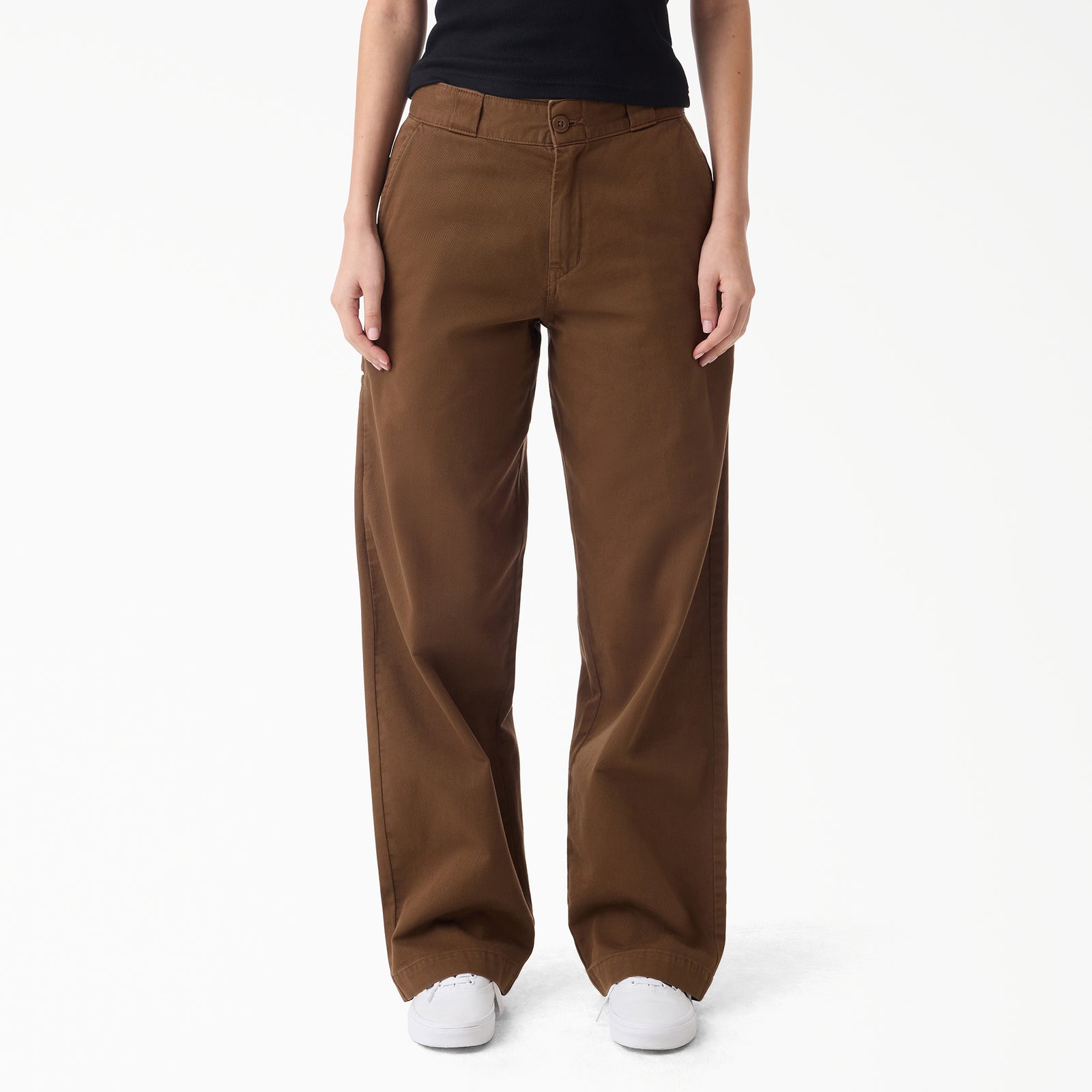 The women's 247 garment dyed loose work pants in brown bring comfort to your daily grind. Crafted from 100% cotton in a woven construction, they offer breathability and durability that stands up to whatever your day throws at you. The relaxed silhouette gives you freedom to move while keeping that classic Dickies workwear style.