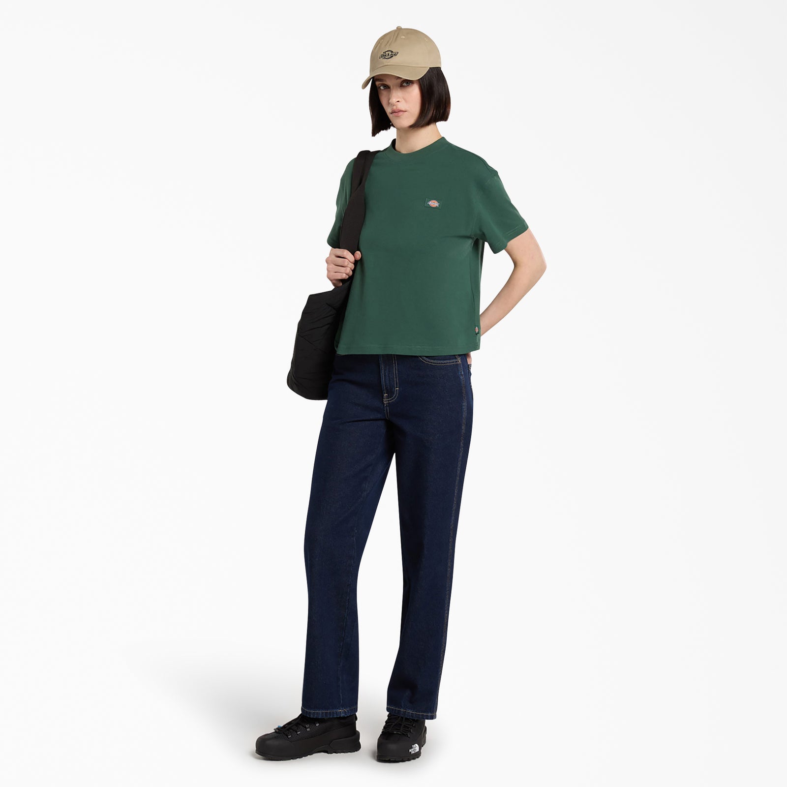 The Oakport tee features a boxy fit and cropped length for a casual look. The t-shirt has flat locked seam detailing and is made from a comfortable jersey fabrication.