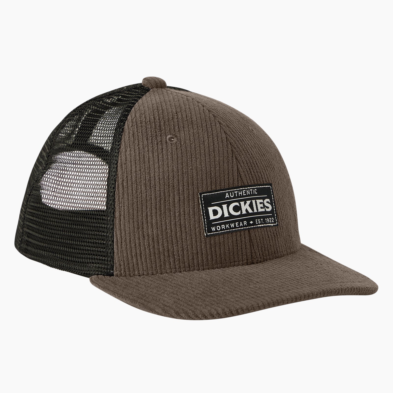 Une casquette de camionneur classique avec une touche de velours côtelé. Elle est dotée de panneaux arrière en mesh pour la ventilation, d'une coupe discrète et structurée et d'une fermeture à pression réglable.