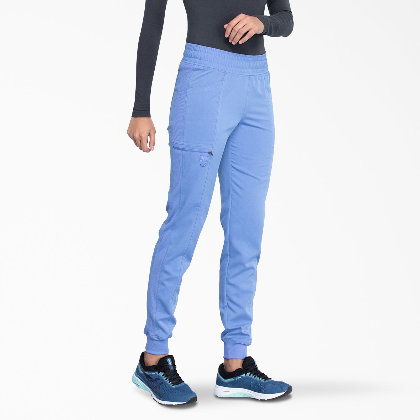 This Contemporary fit, mid rise jogger pant has princess seams with back side panels in comfort knit, two roomy pockets with an elastic bungee at the bottom of the secured zip pocket, and two back pockets. It also features an adjustable interior drawstring and enclosed elastic waistband. Bottom knit cuffs.